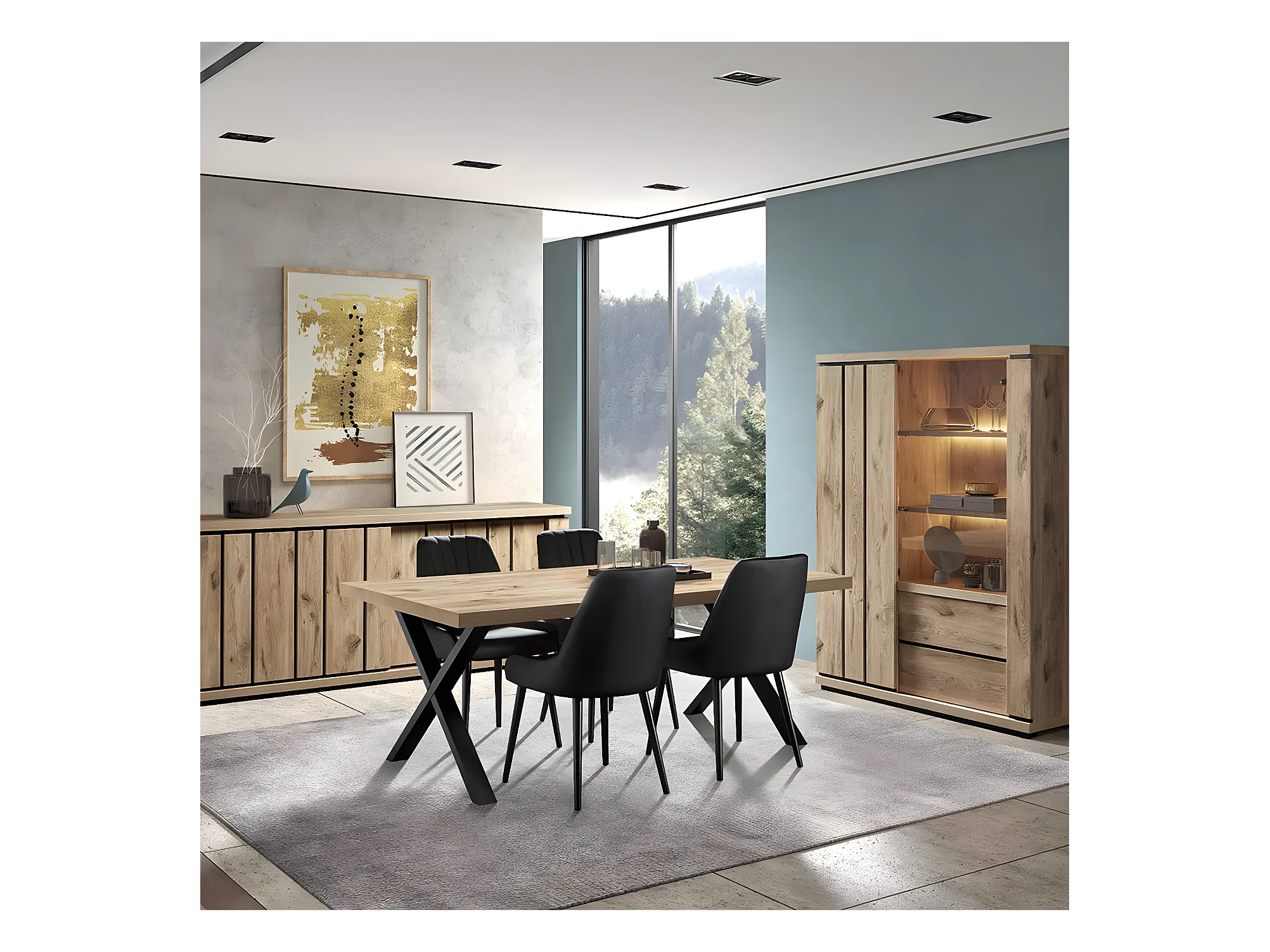 PHILEAS - Séjour avec Table 230 Piétement X Effet Claustra Finition Canyon
