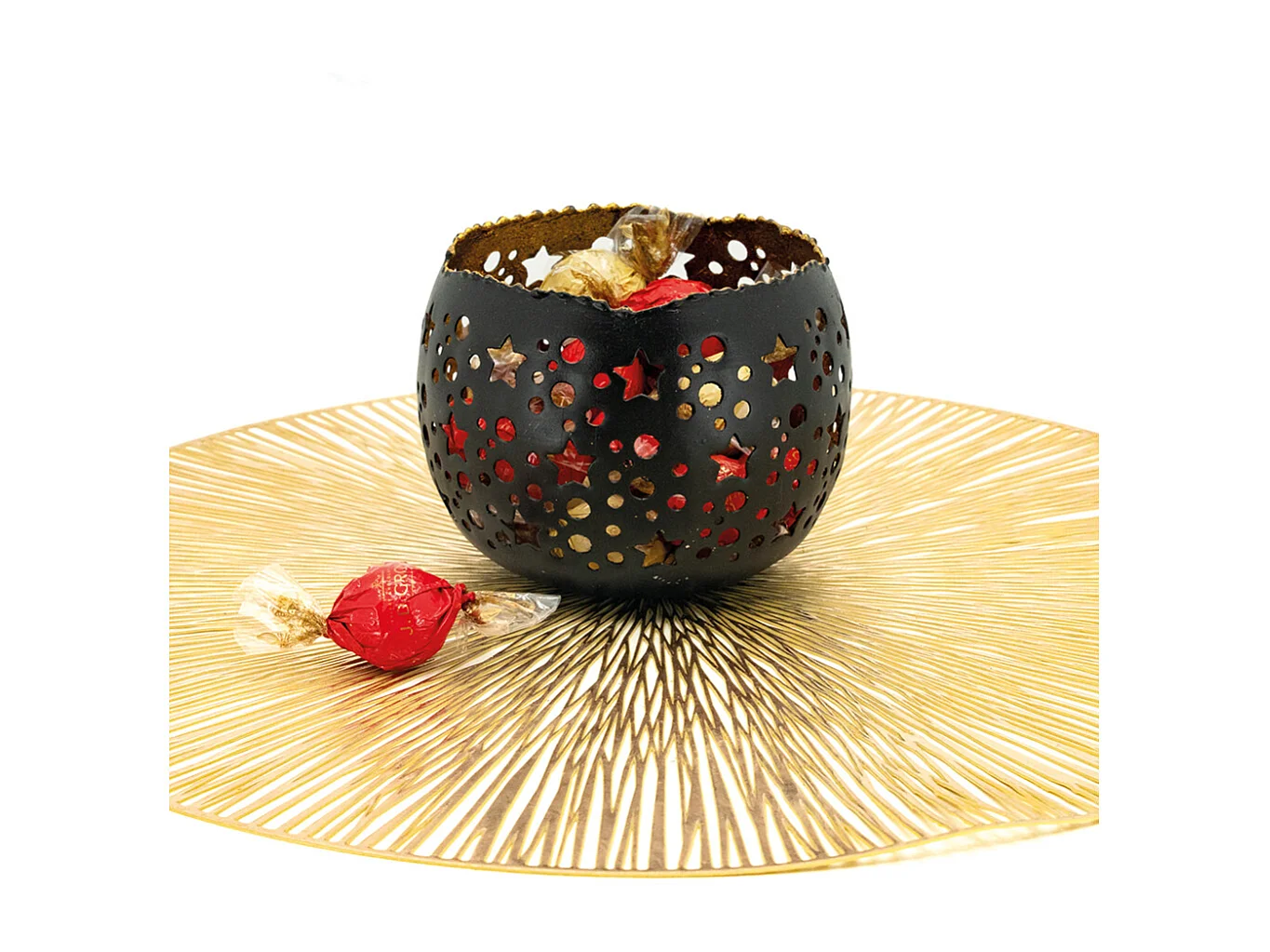 Photophore boule en métal noir et doré Lot de 4