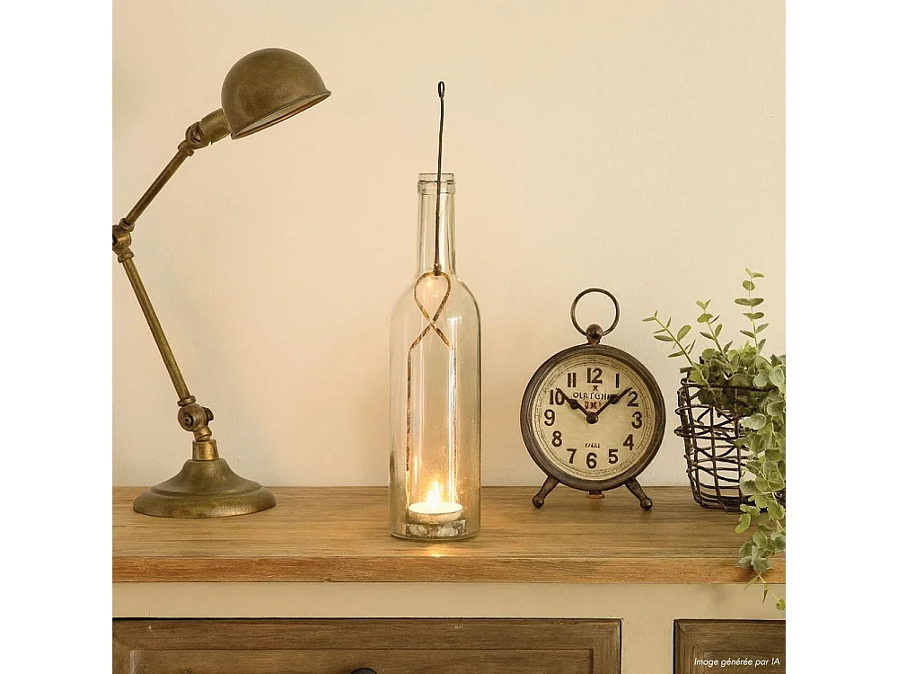 Photophore bouteille en métal et verre gris Ø.7 x 38.5 cm