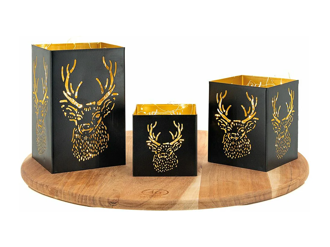 Photophore carré tête de cerf (Lot de 3)