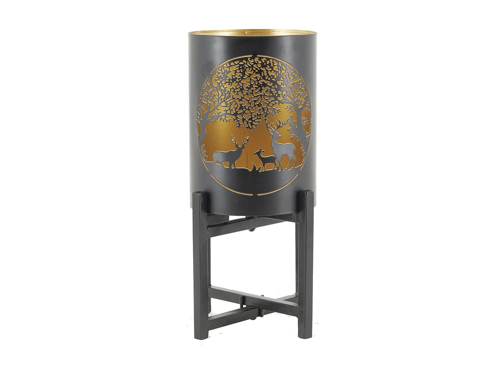 Lanternes en métal laqué noir carrée motif feuilles (Lot de 2)