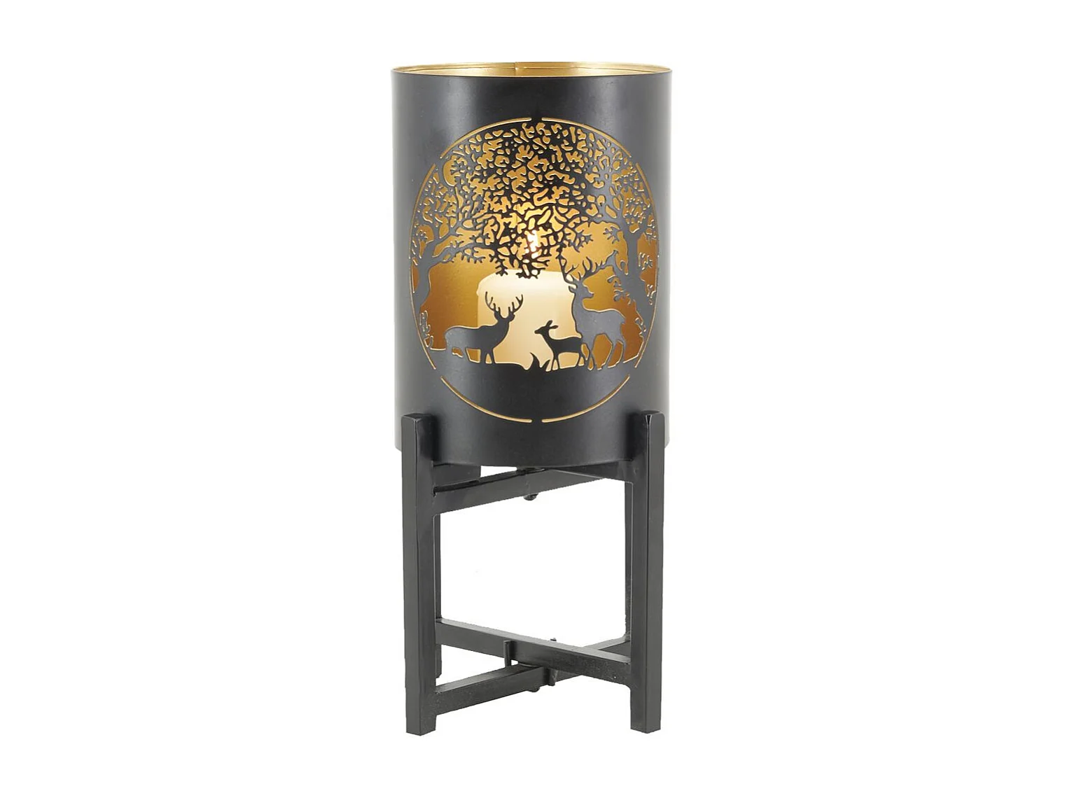 Photophore sapin en métal noir avec photophore en verre – Décoration lumineuse Noël