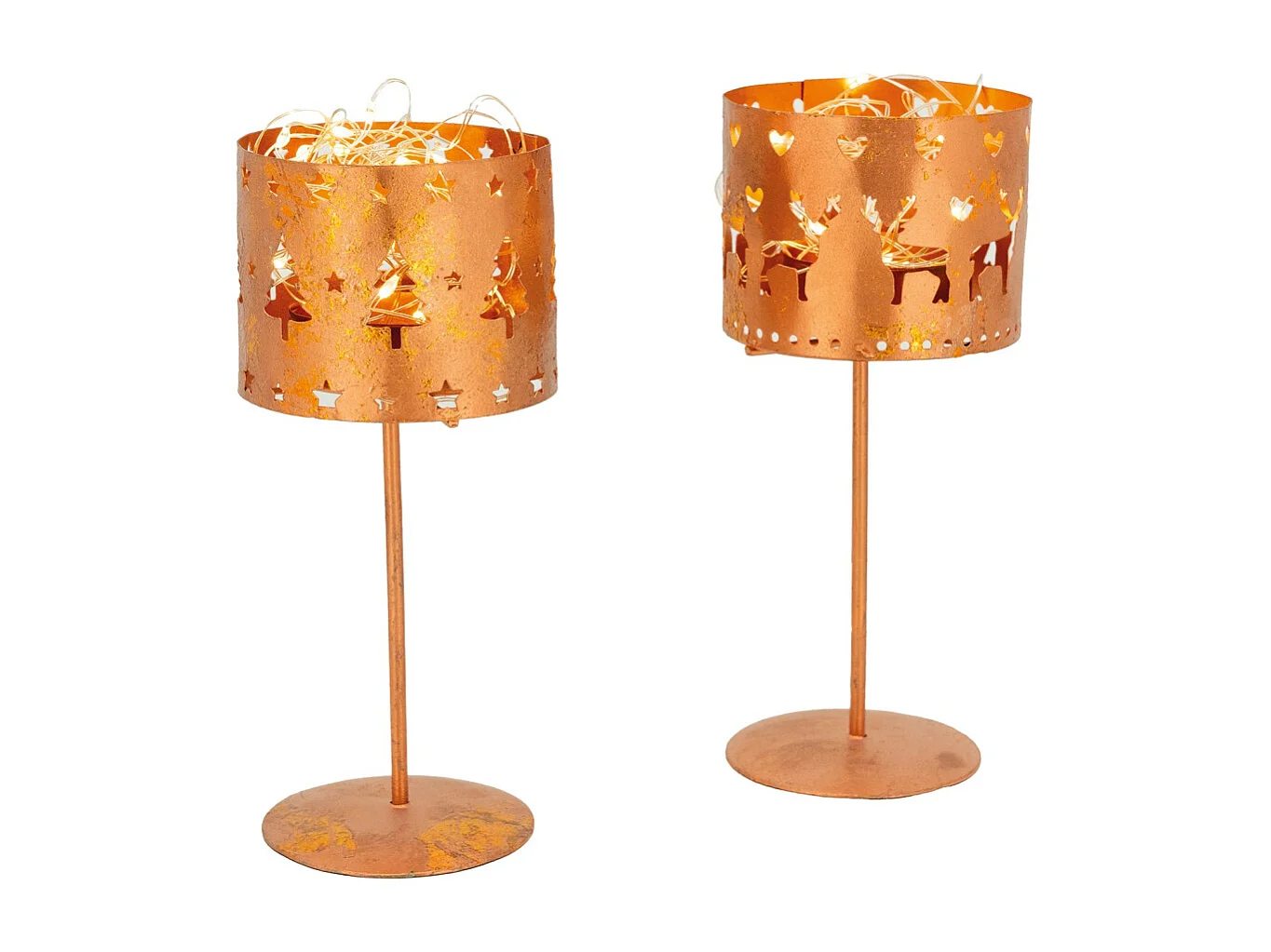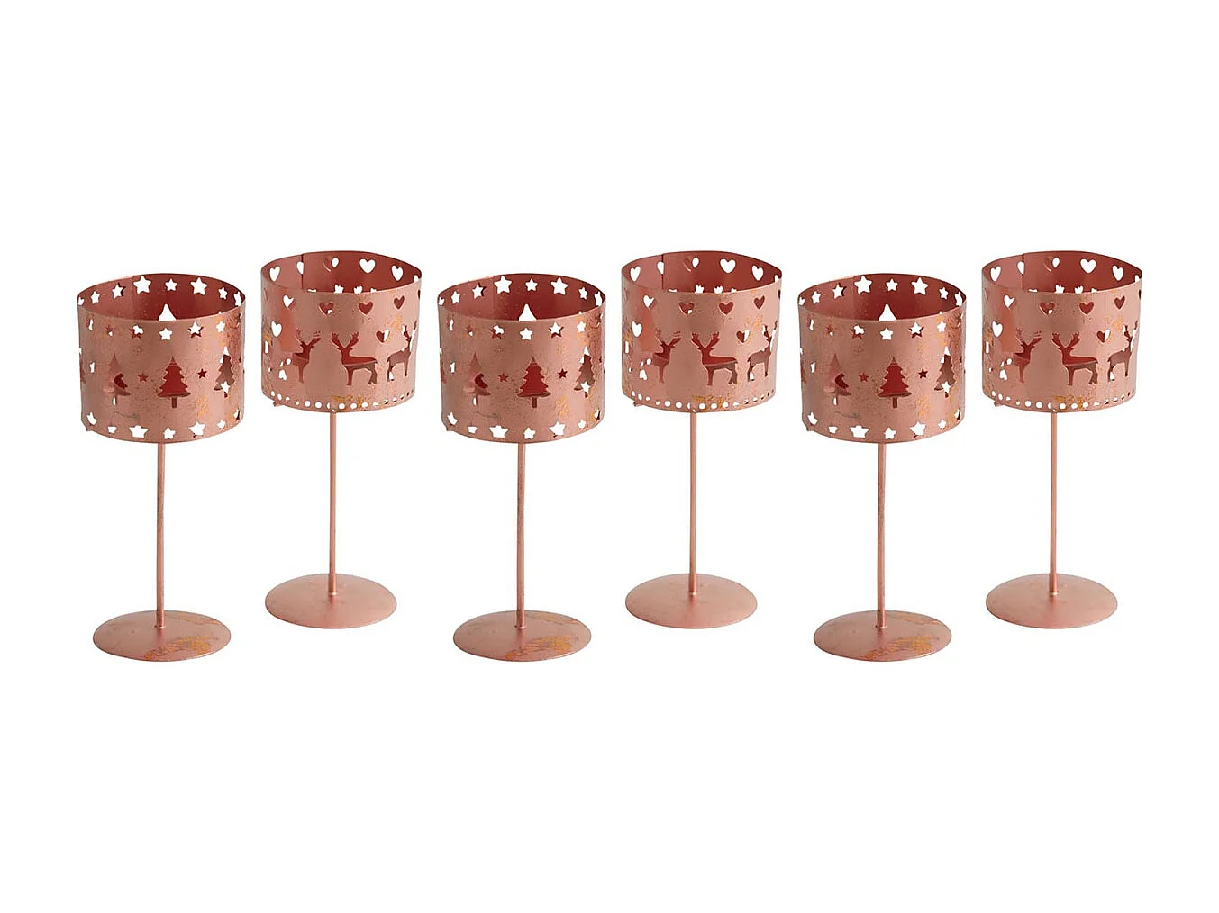 Photophore de Noël sur pied en métal cuivré (Lot de 6) Lot de 6