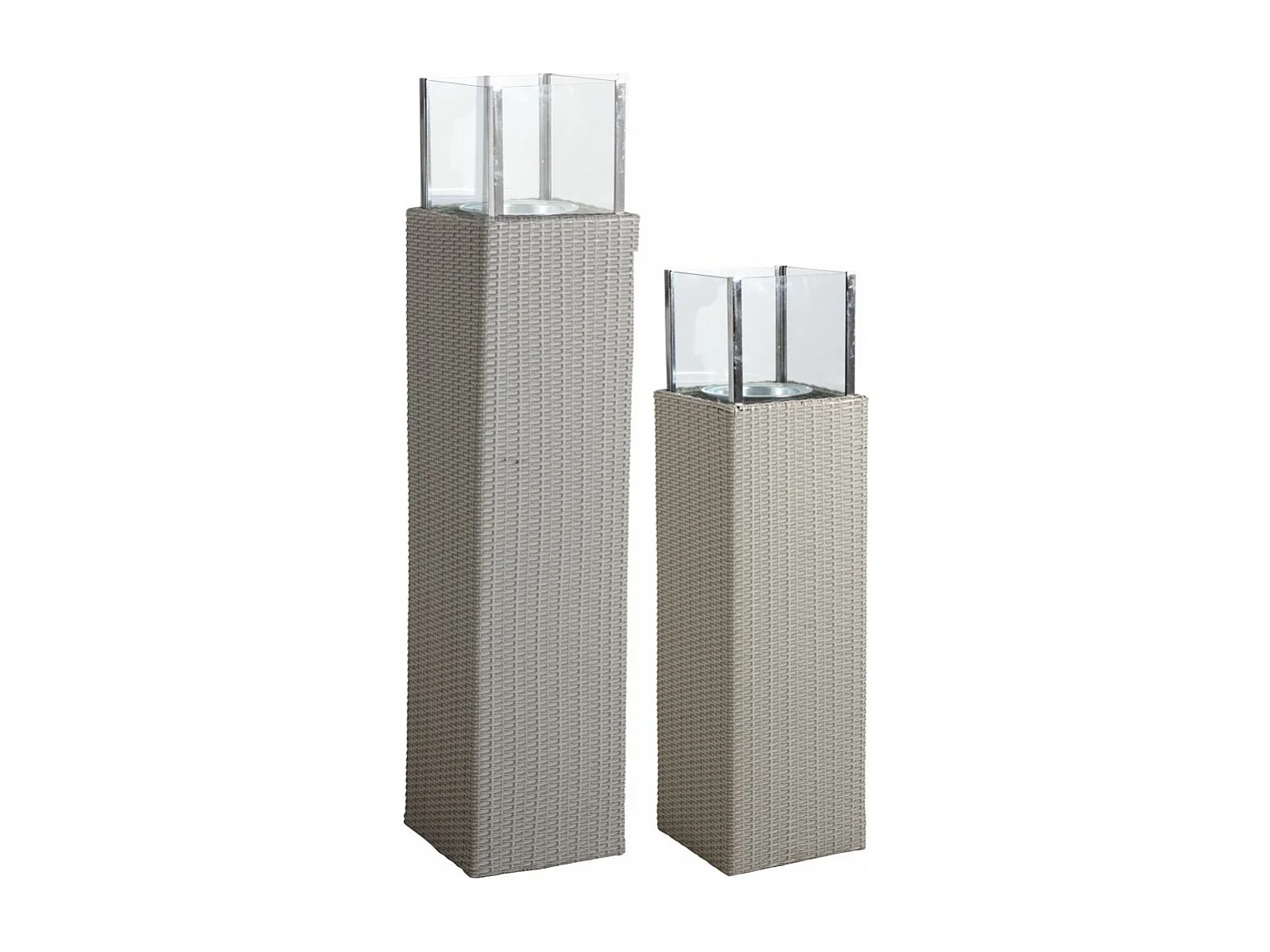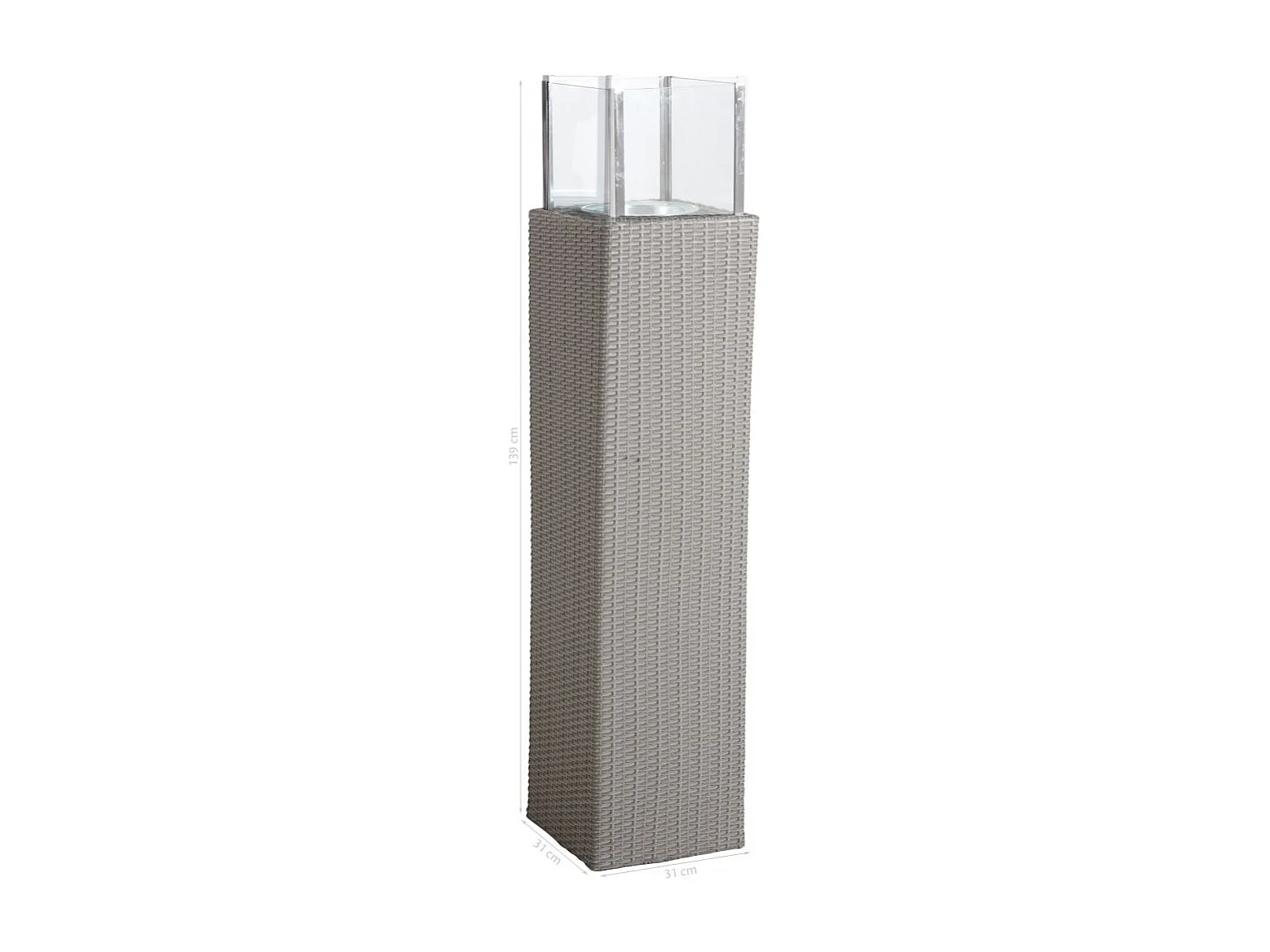 Photophore d'extérieur gris en résine et verre Hauteur 139 cm