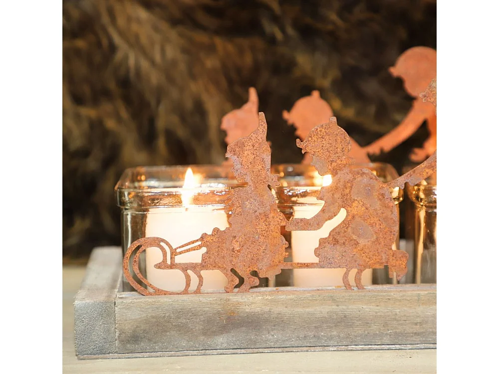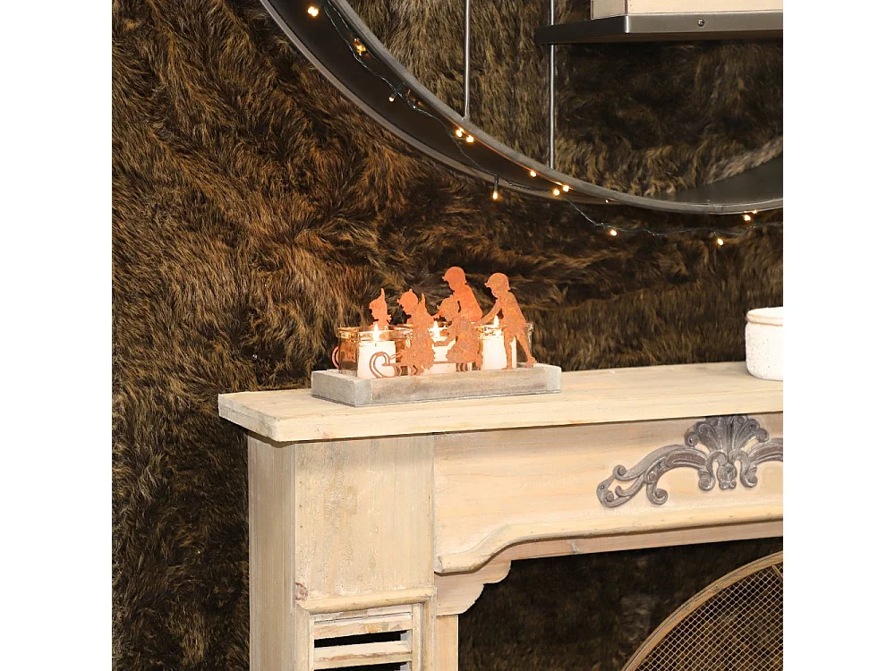 Bougeoir 4 supports en bois et métal marron 24 x 24 x 11
