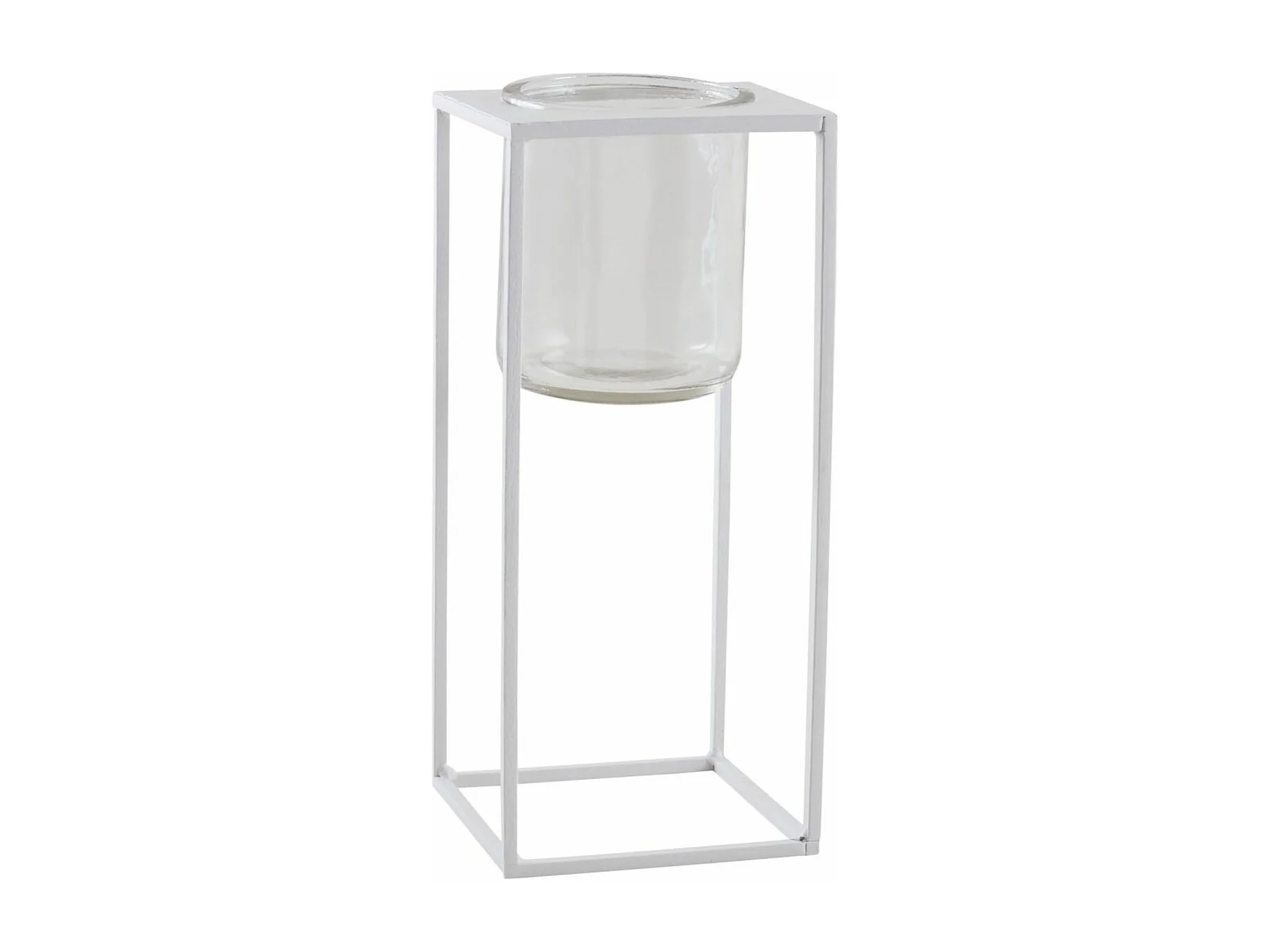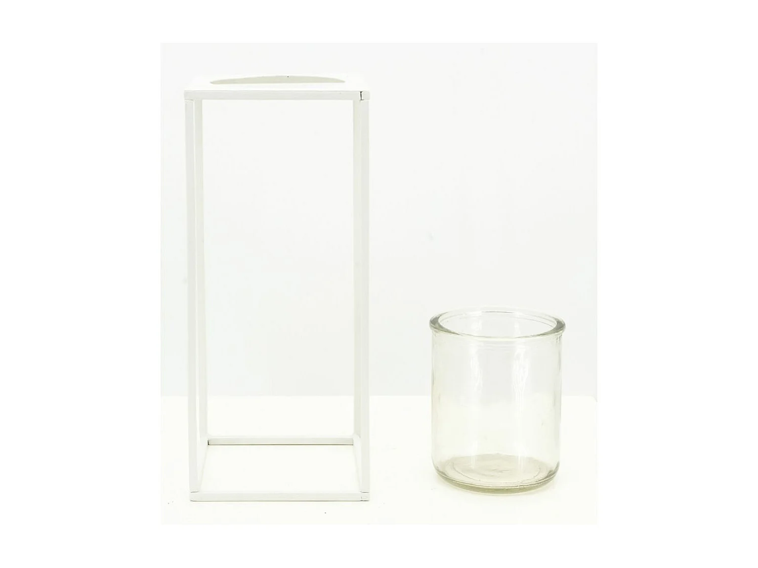 Set de 2 photophores en verre blanc 7x7x8 cm