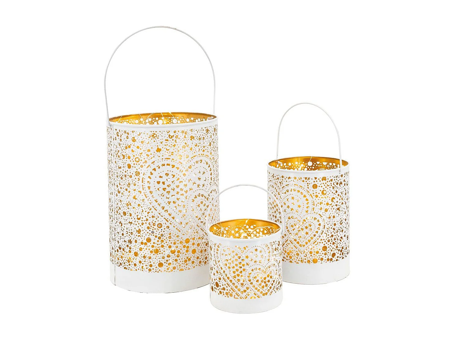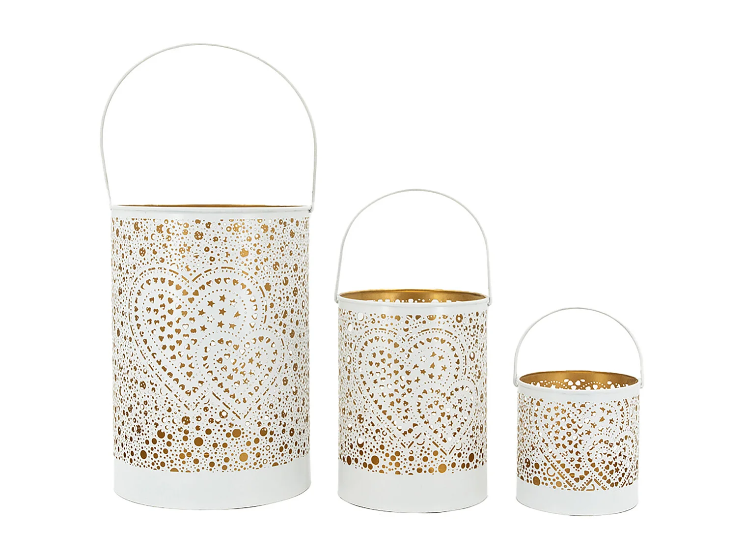 Photophore en métal laqué blanc Coeur lot de 3 Rondes