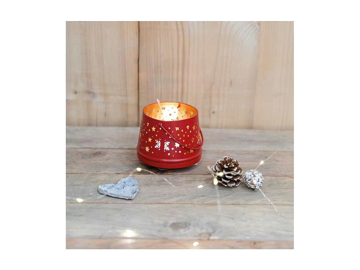 Photophore en métal laqué rouge Boule