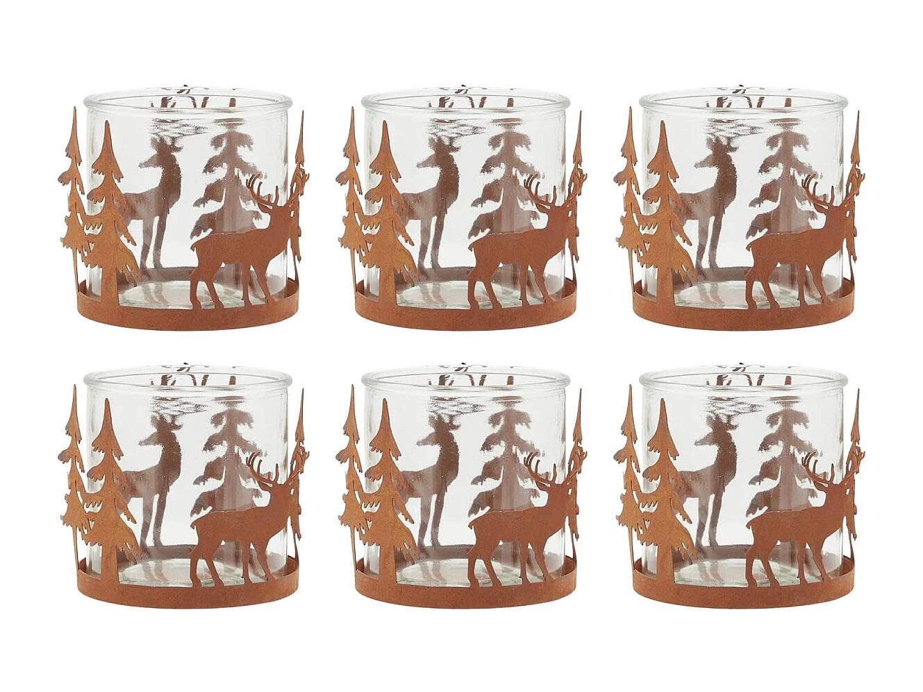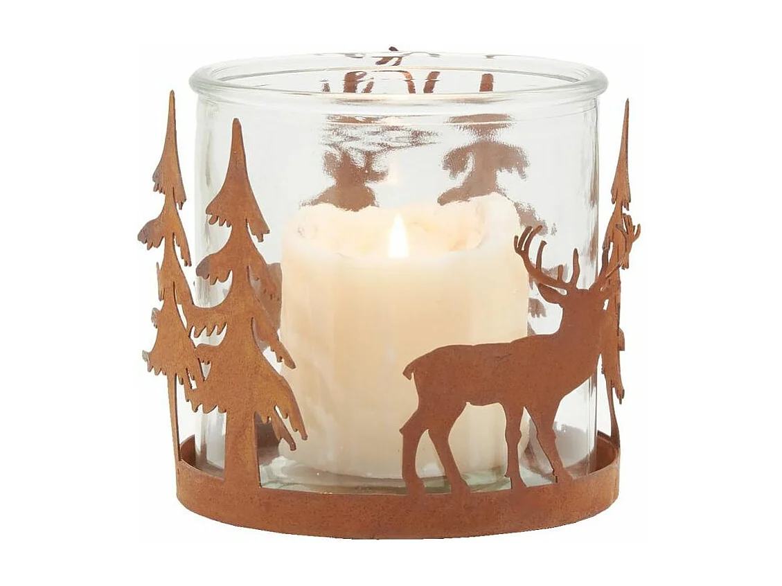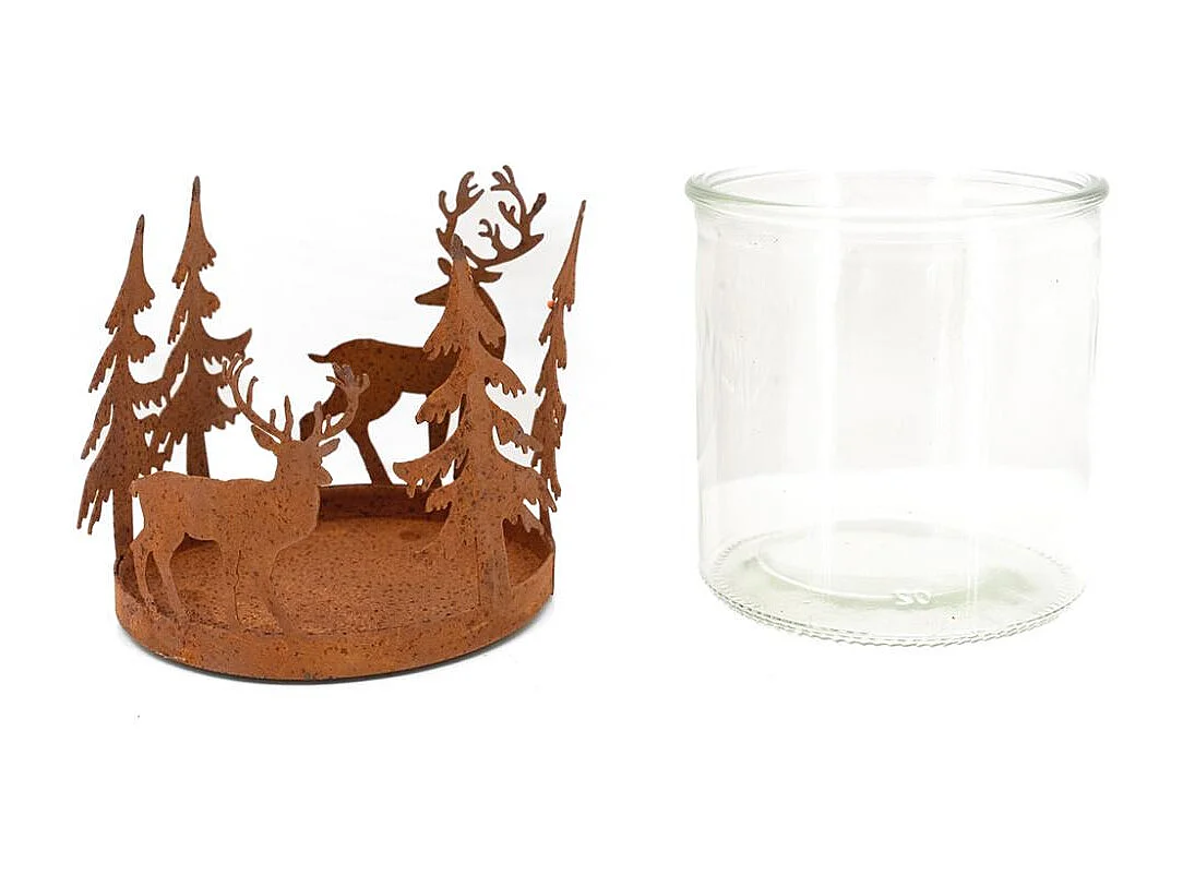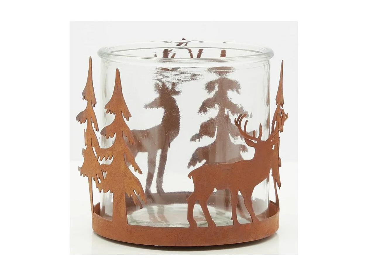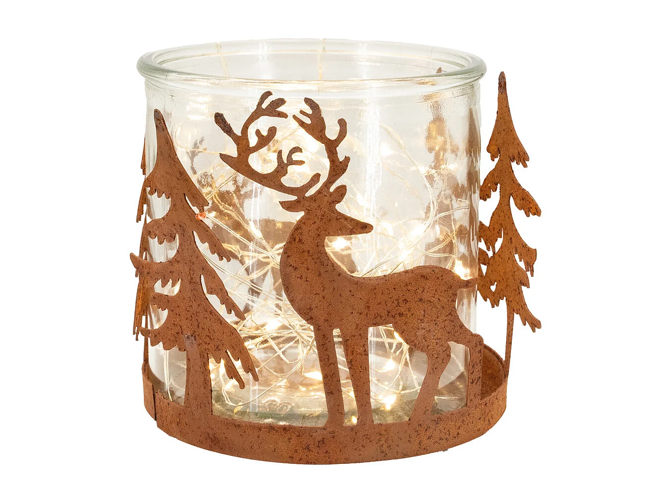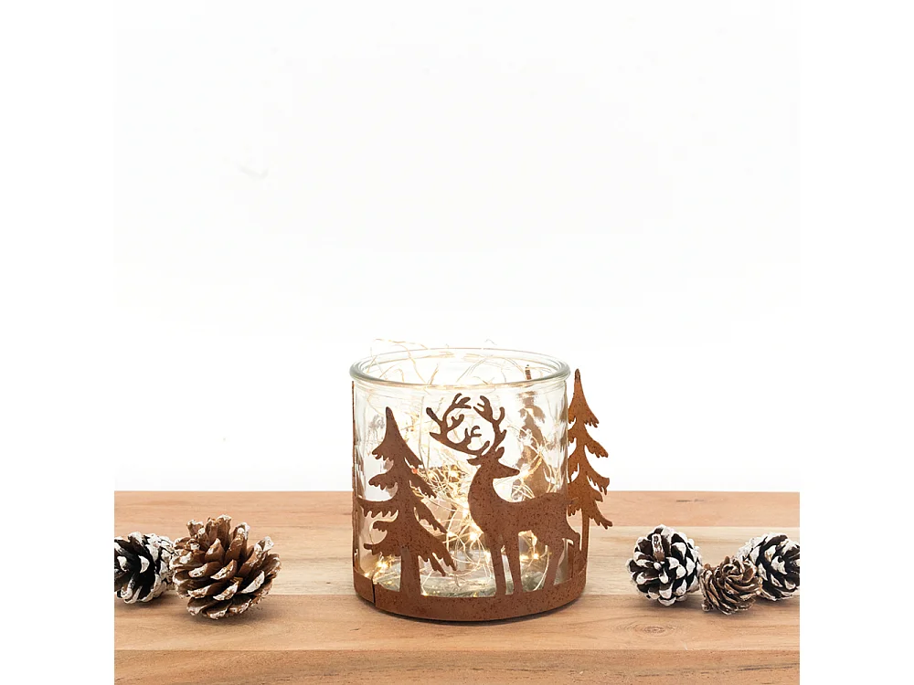 Photophore Rondins Étoiles "Soir" 20cm Naturel & Vert