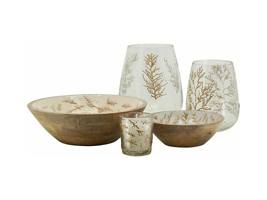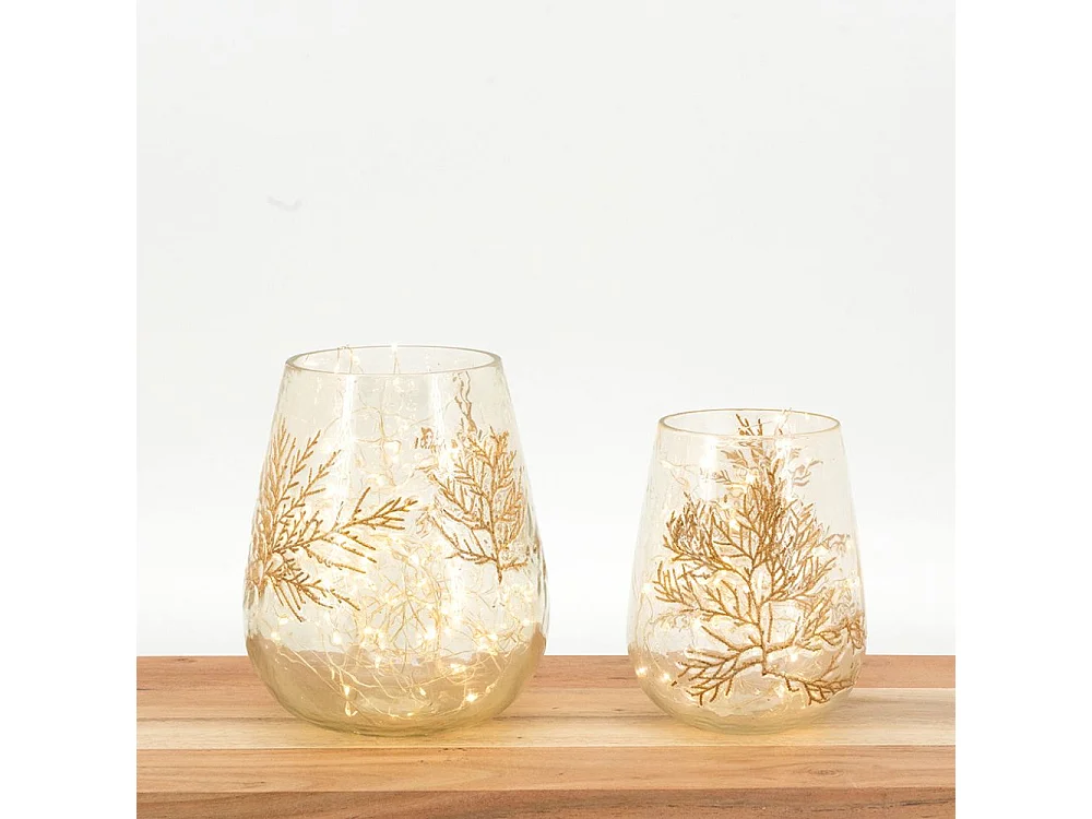 Photophore en verre sablé doré et blanc 8 cm (Lot de 2)