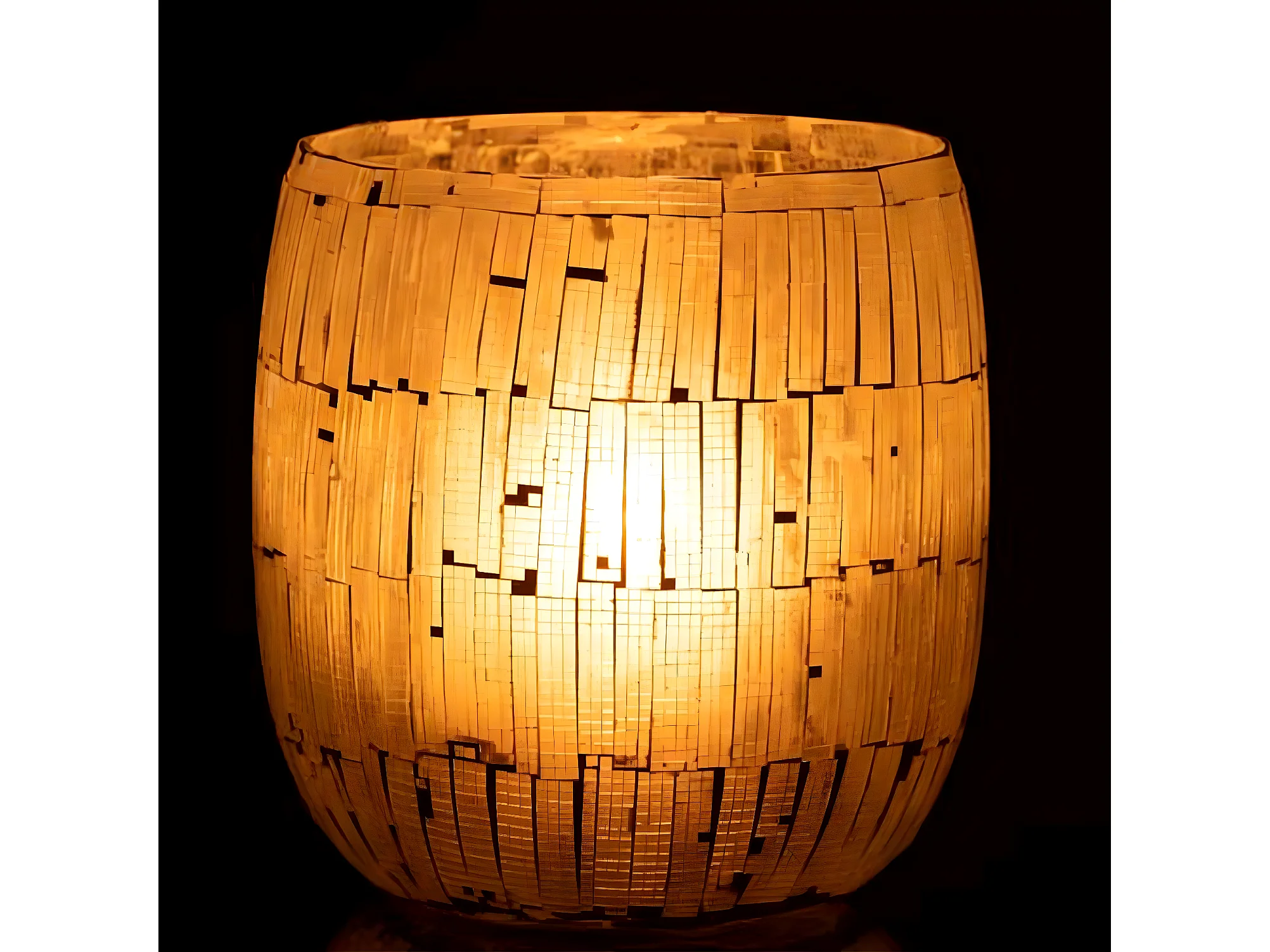 Photophore Déco en Verre "Mosaïque" 16cm Gris