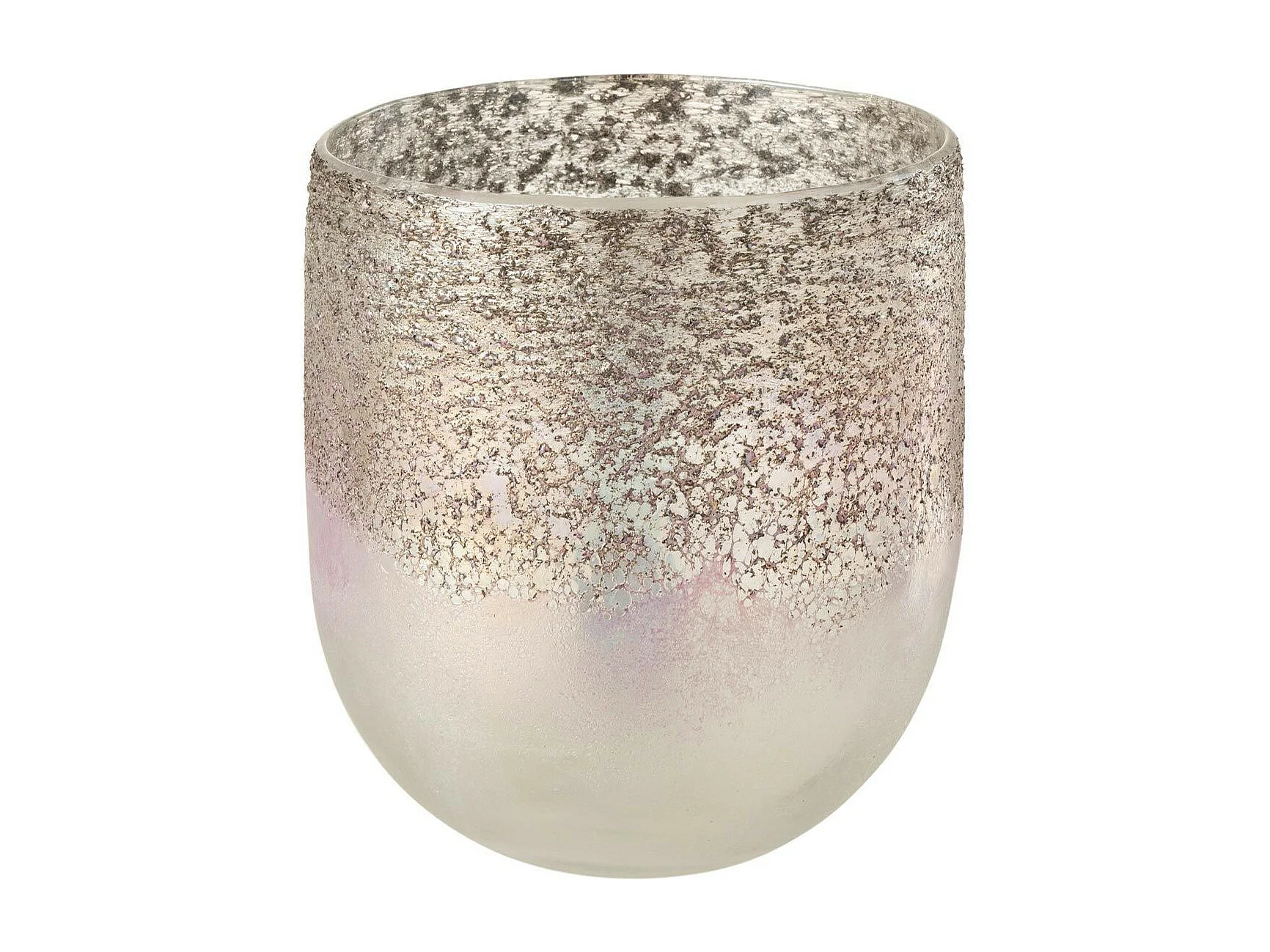 Photophore Rond en Verre "Milano" 15cm Gris & Rose