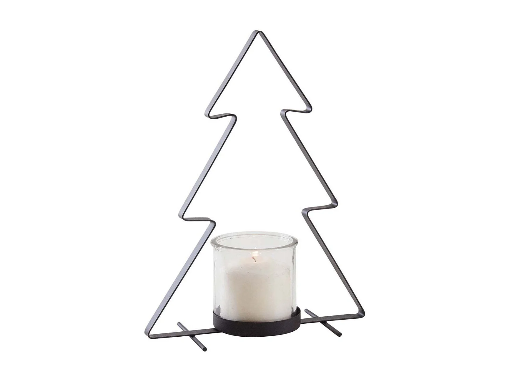 Photophore sapin en métal noir avec photophore en verre – Décoration lumineuse Noël