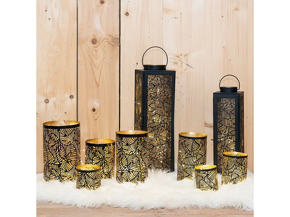 Photophore sapin en métal noir avec photophore en verre – Décoration lumineuse Noël