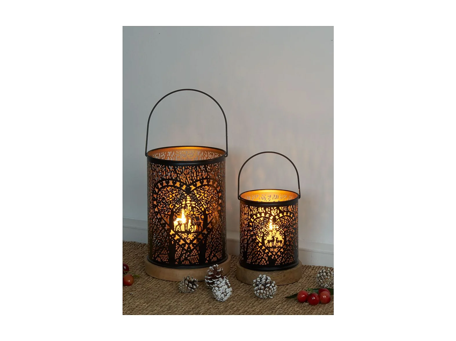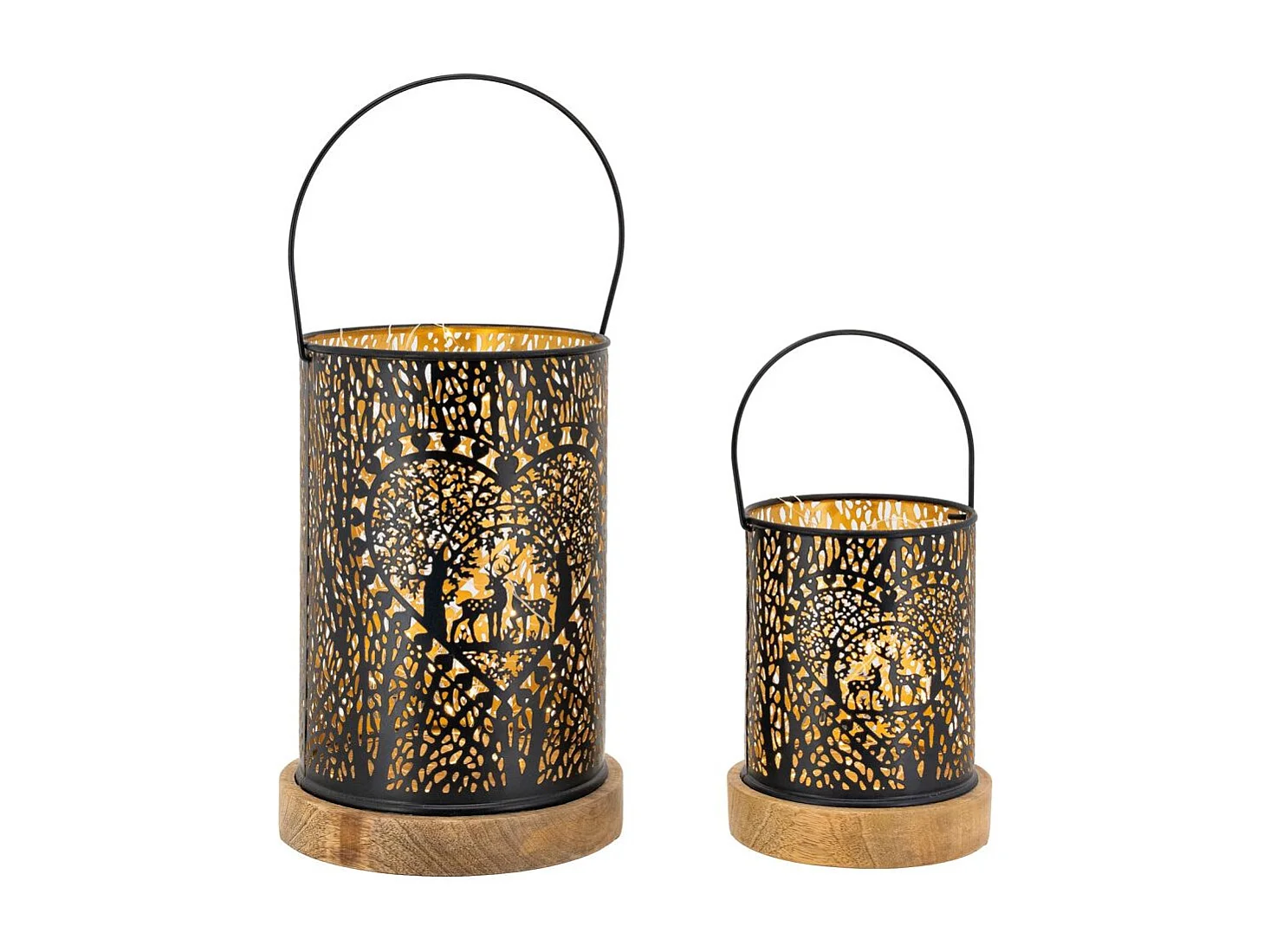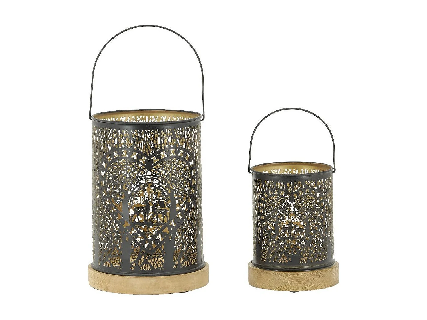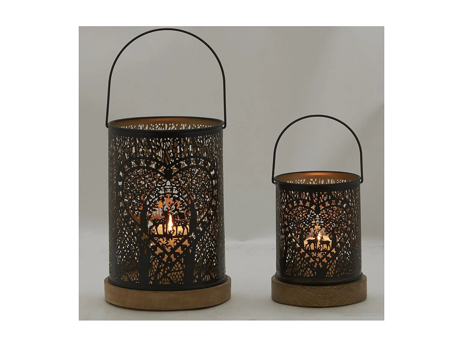 Lanternes en métal laqué noir carrée motif feuilles (Lot de 2)