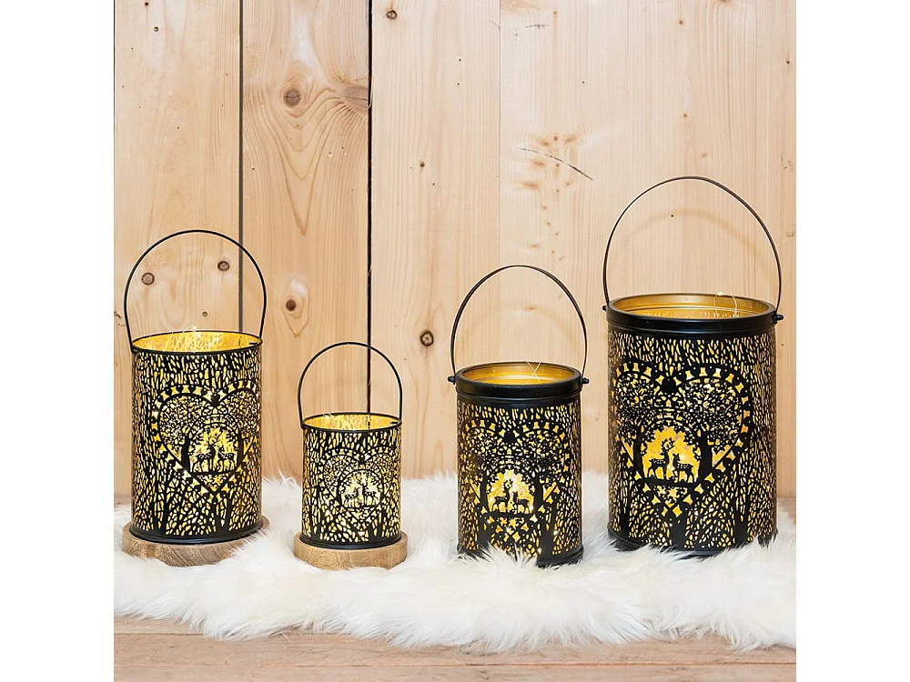Photophore sapin en métal noir avec photophore en verre – Décoration lumineuse Noël