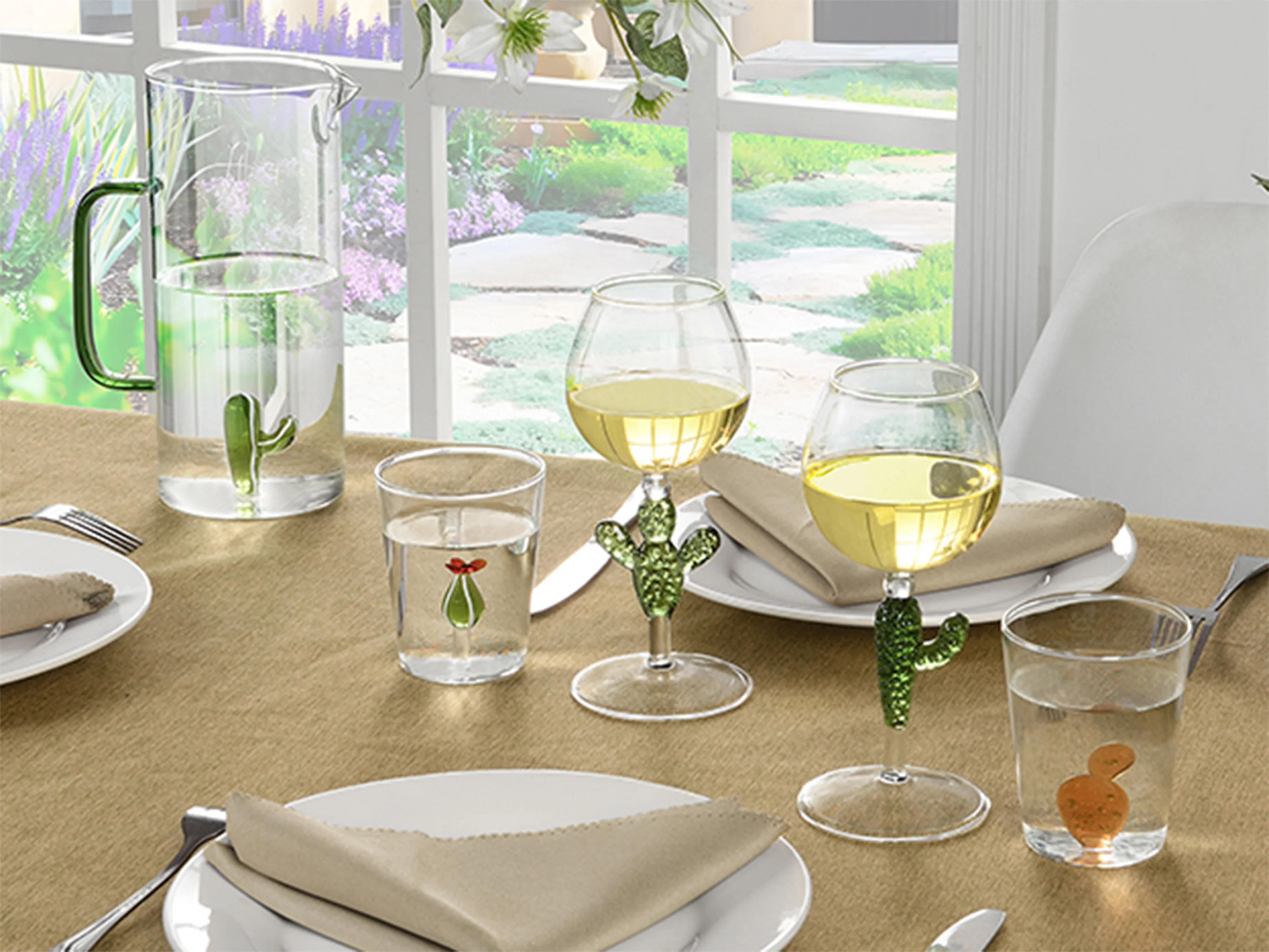 Pichet en verre avec cactus - Transparent et vert - D. 14.5 x H.24 cm - OLATA