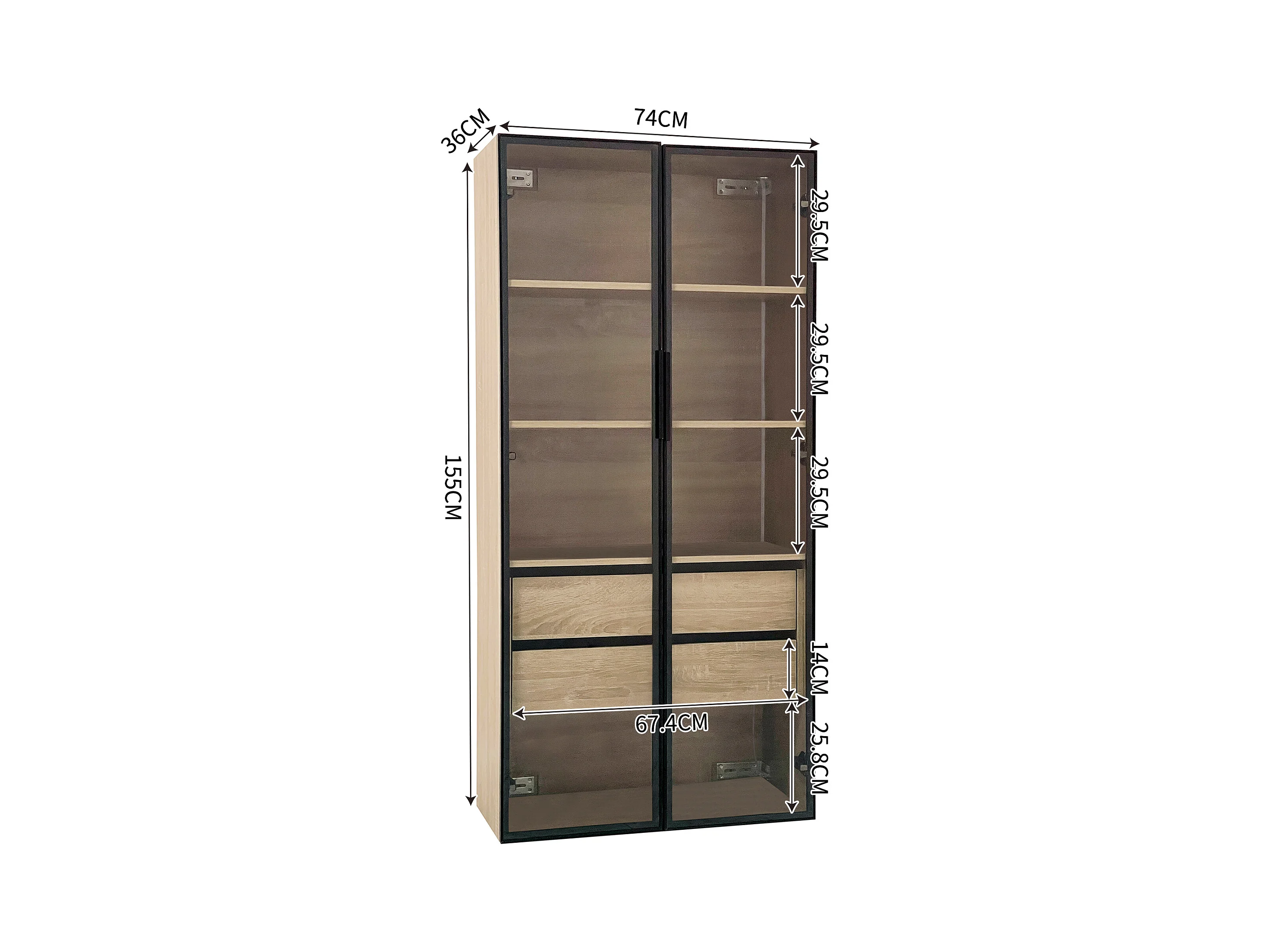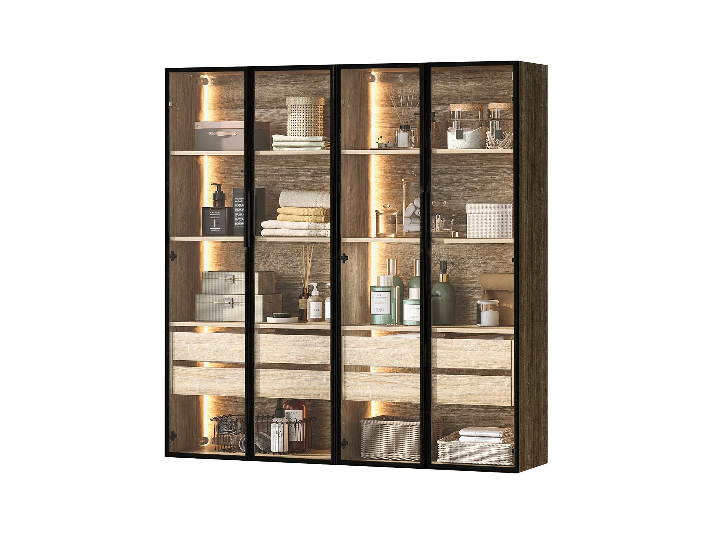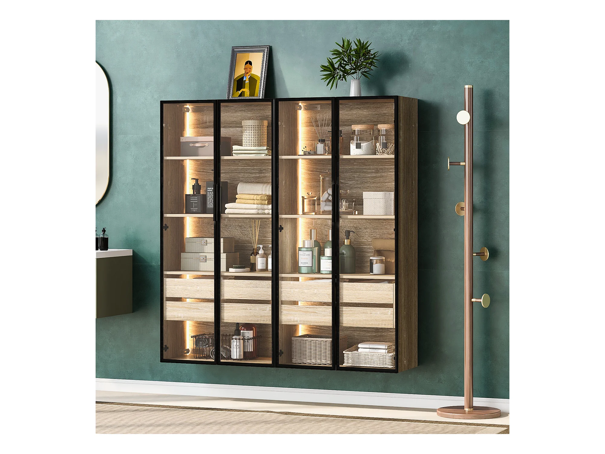 pièces de meubles de salle de bain, avec éclairage LED, 2 portes, 2 grands tiroirs, MDF, couleur bois clair, (73x36x155 cm)