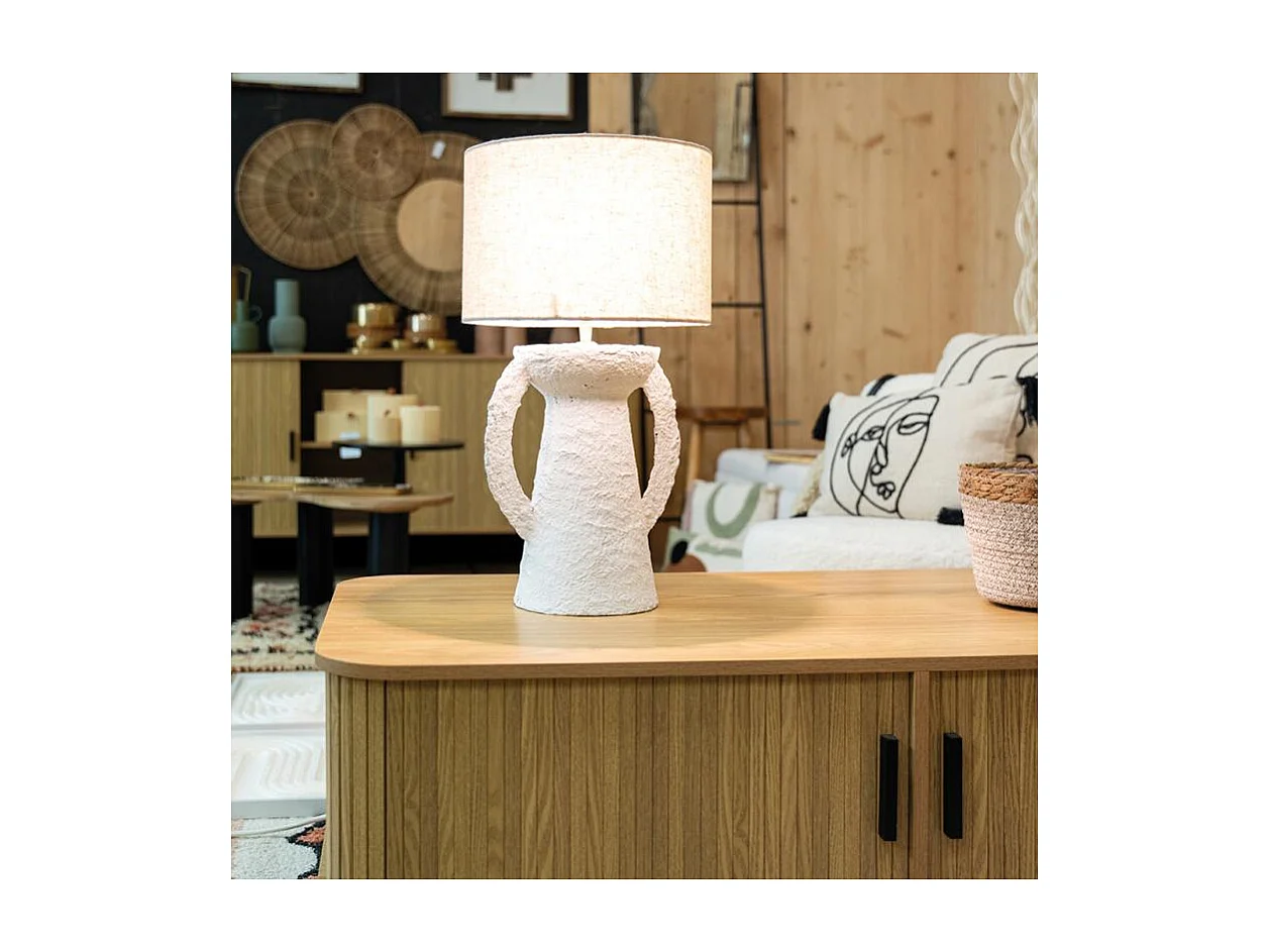 Lampe à poser 40x40x50 avec base et abat-jour en papier mâché blanc