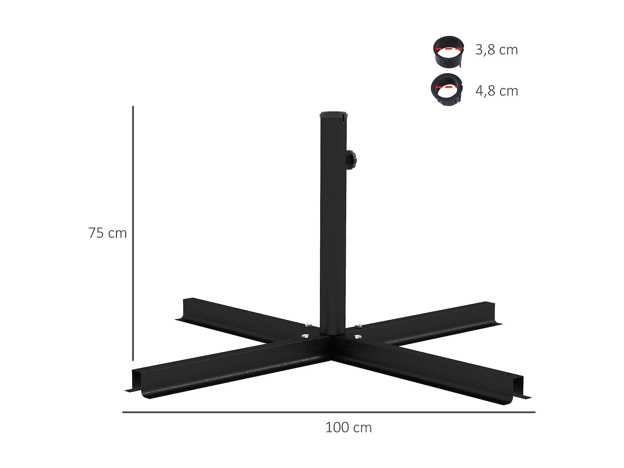 Pied de parasol base de parasol support de parasol en croix dim. 100L x 100l x 75H cm métal époxy noir