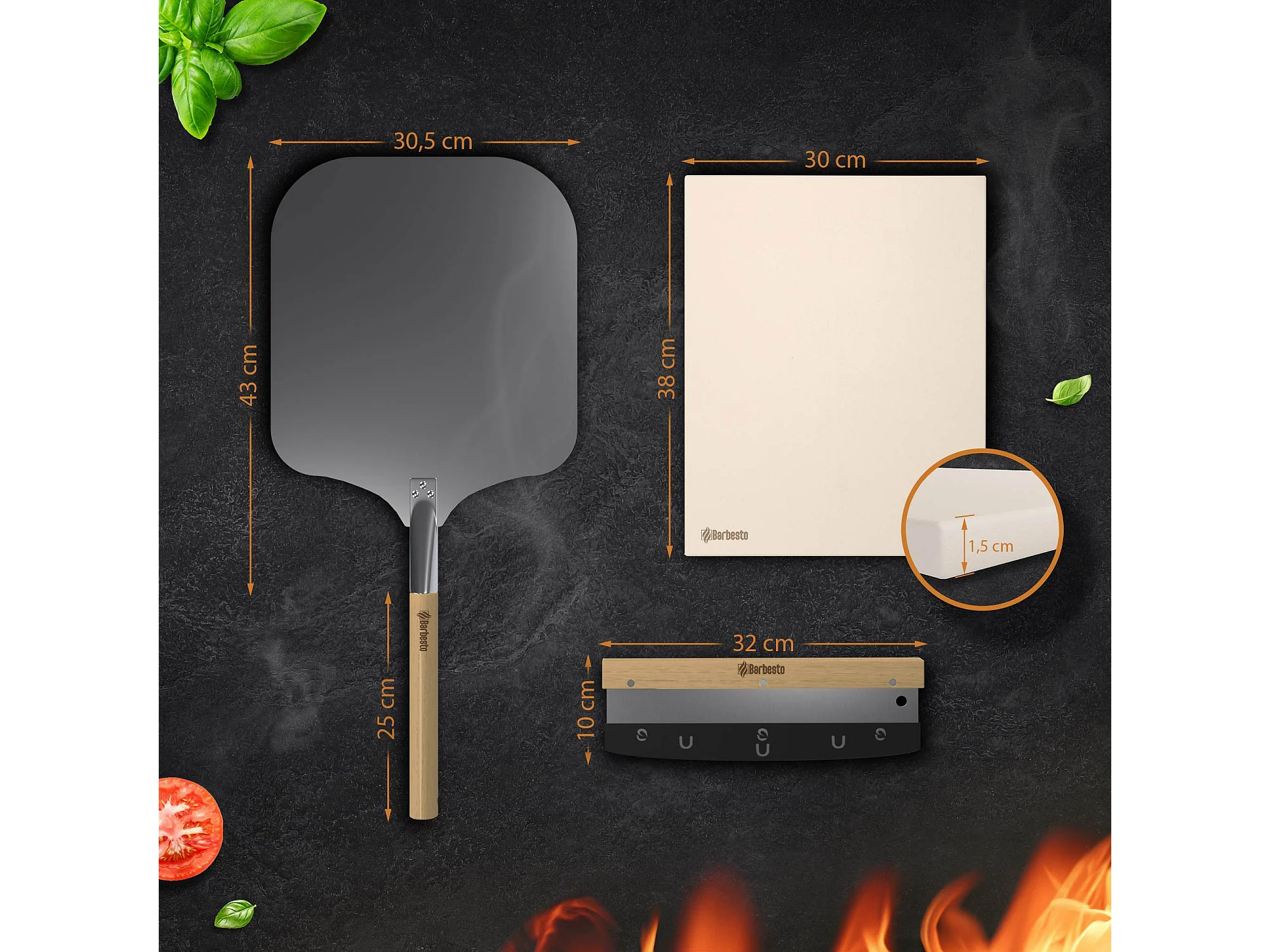 Pierre à pizza+coupe pizza+pelle à pizza - 38 x 30 x 1.5 cm