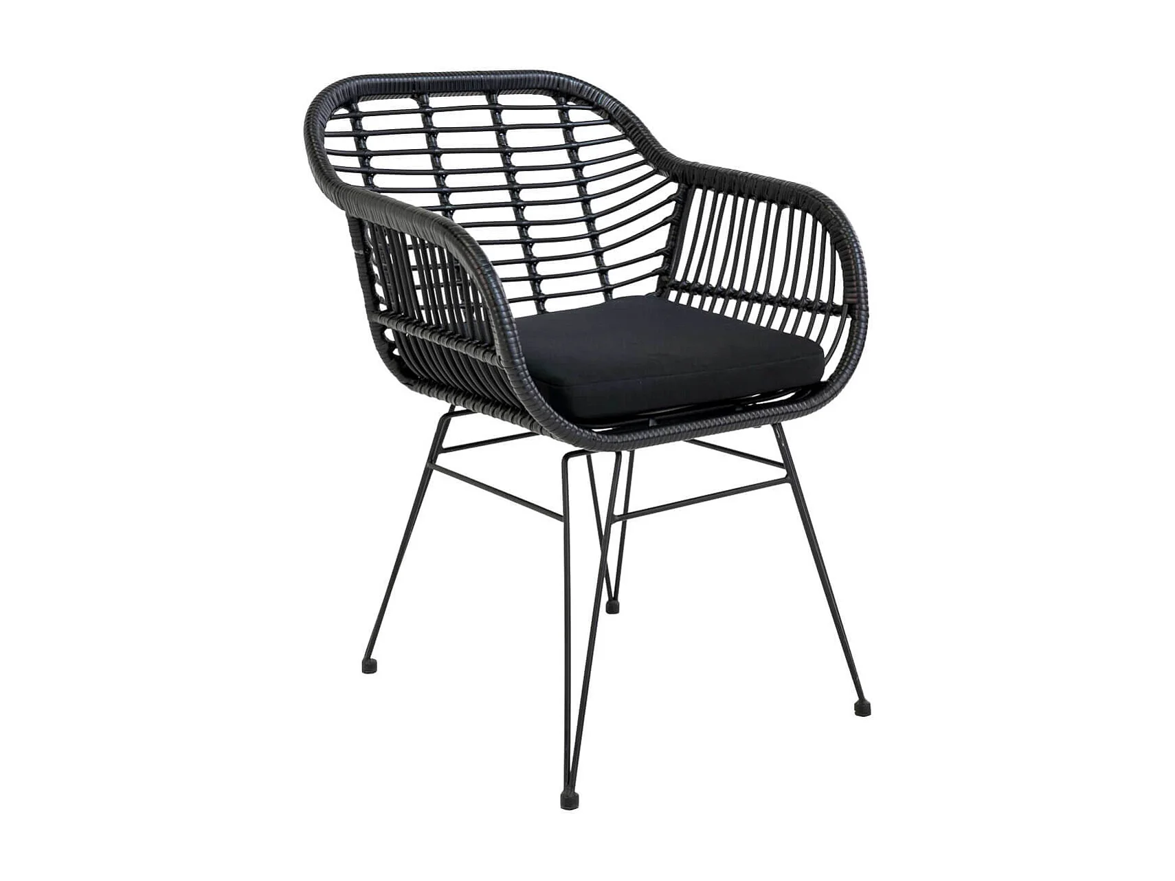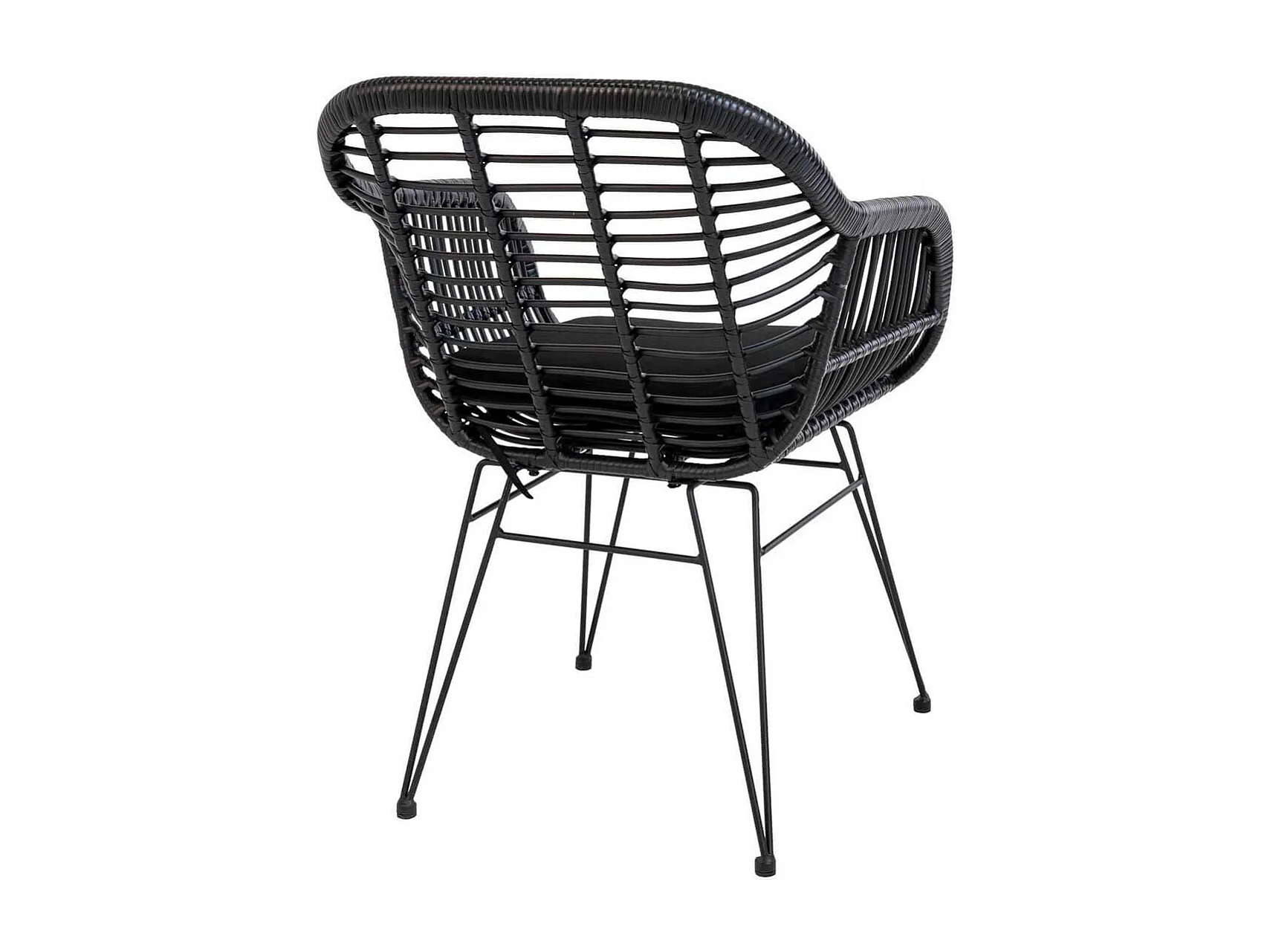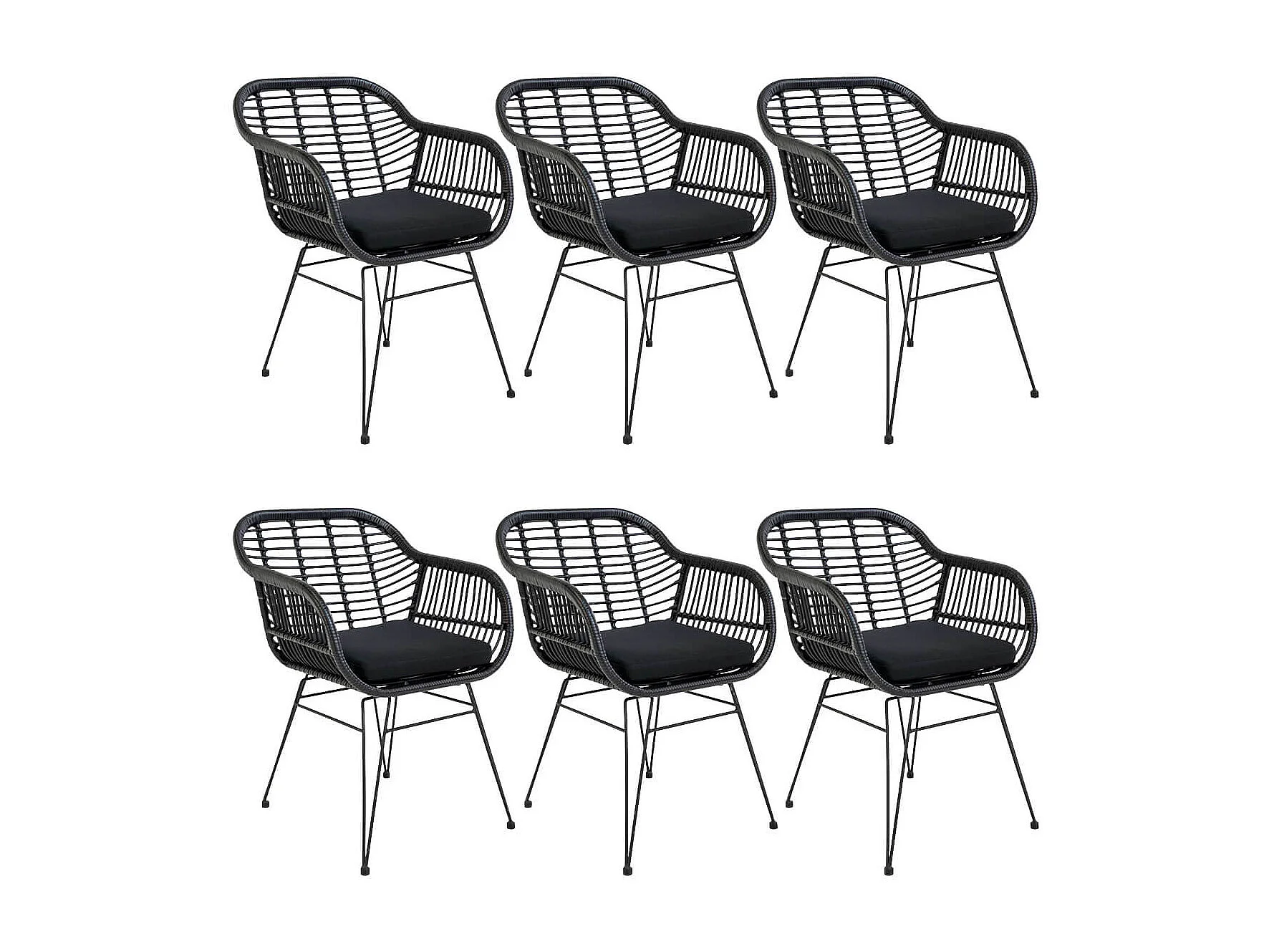 PILA - Lot de 6 Fauteuils Rotin Synthétique Noir et Pieds Acier