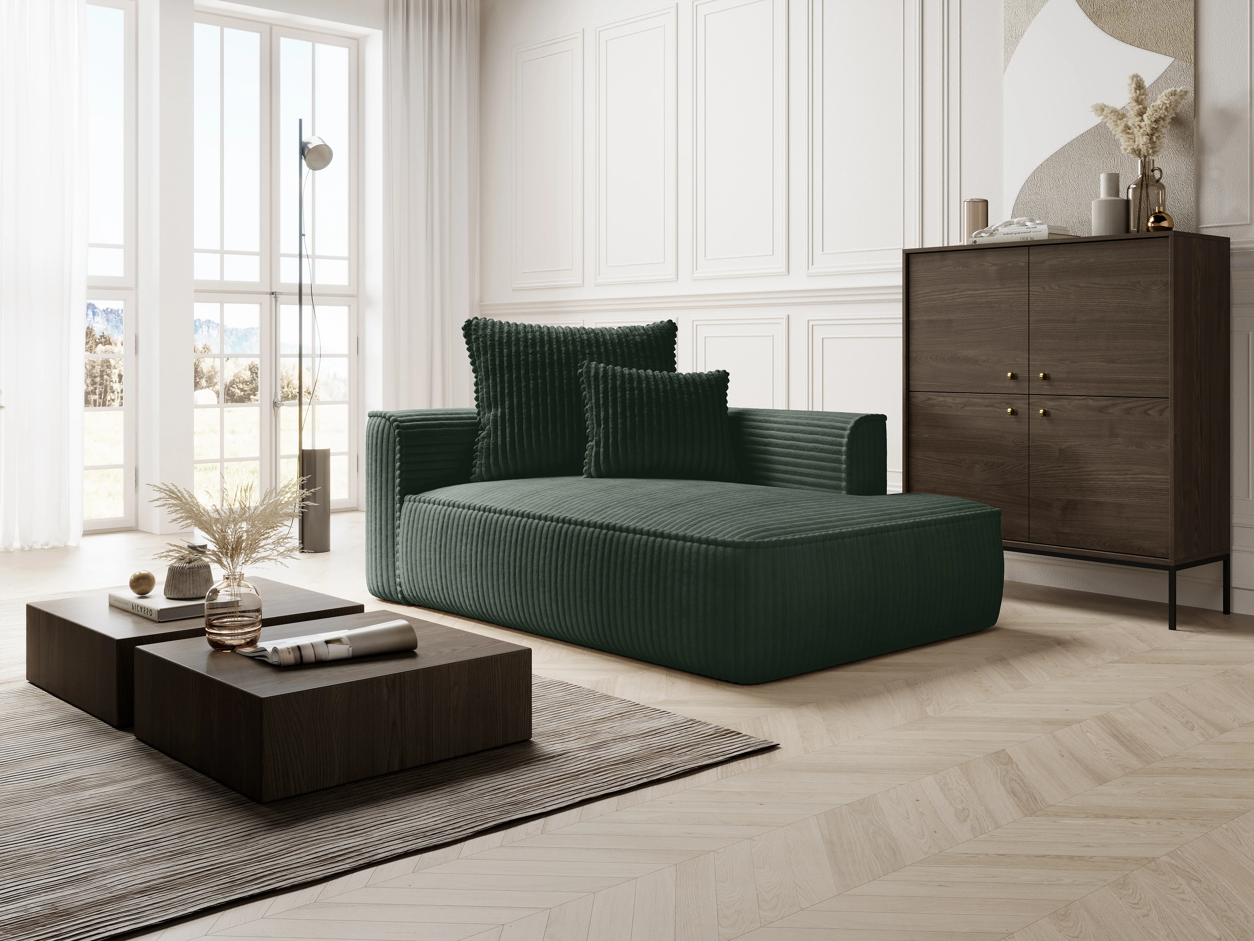Méridienne droite en velours côtelé grosses côtes vert PINETA