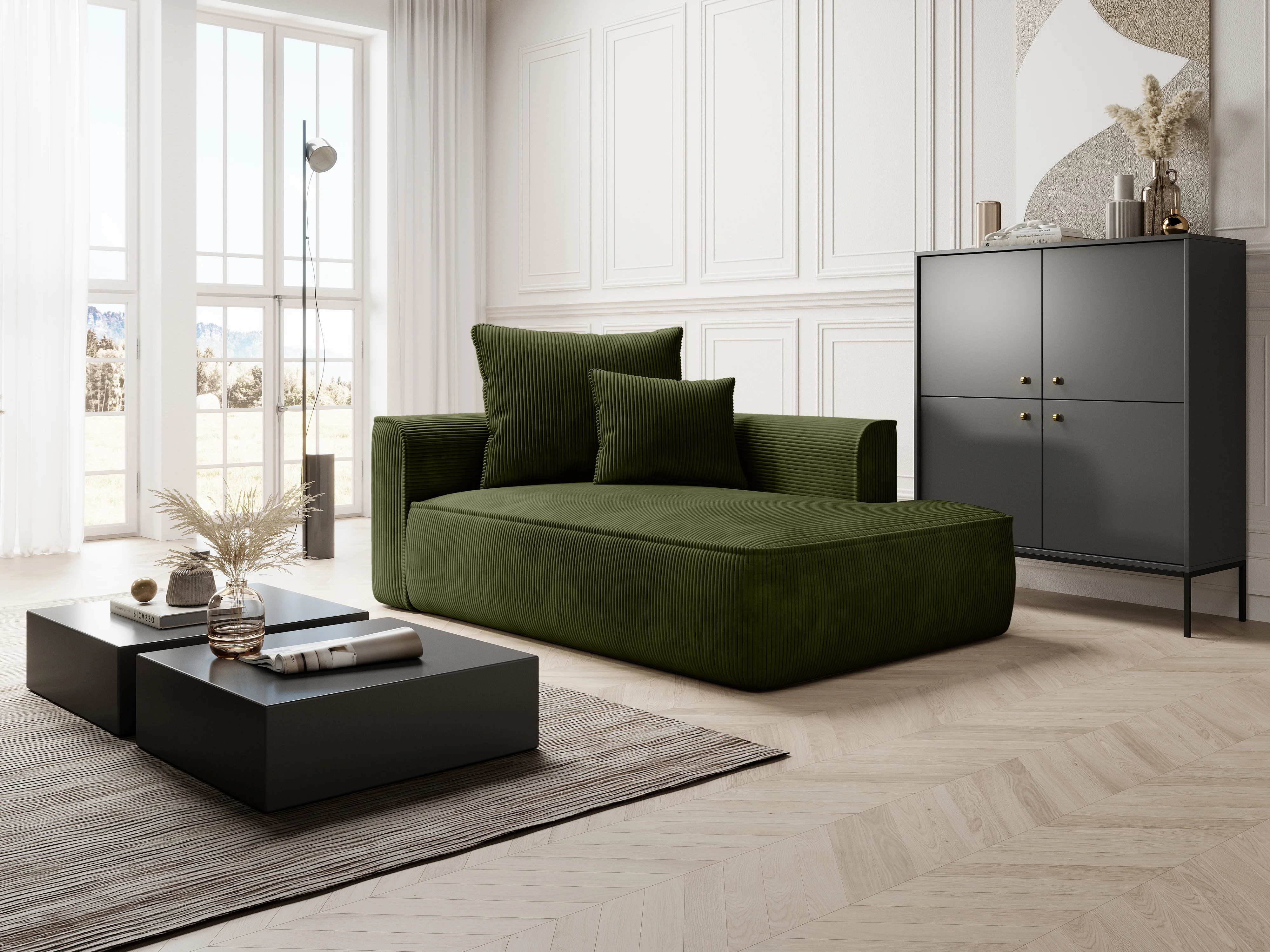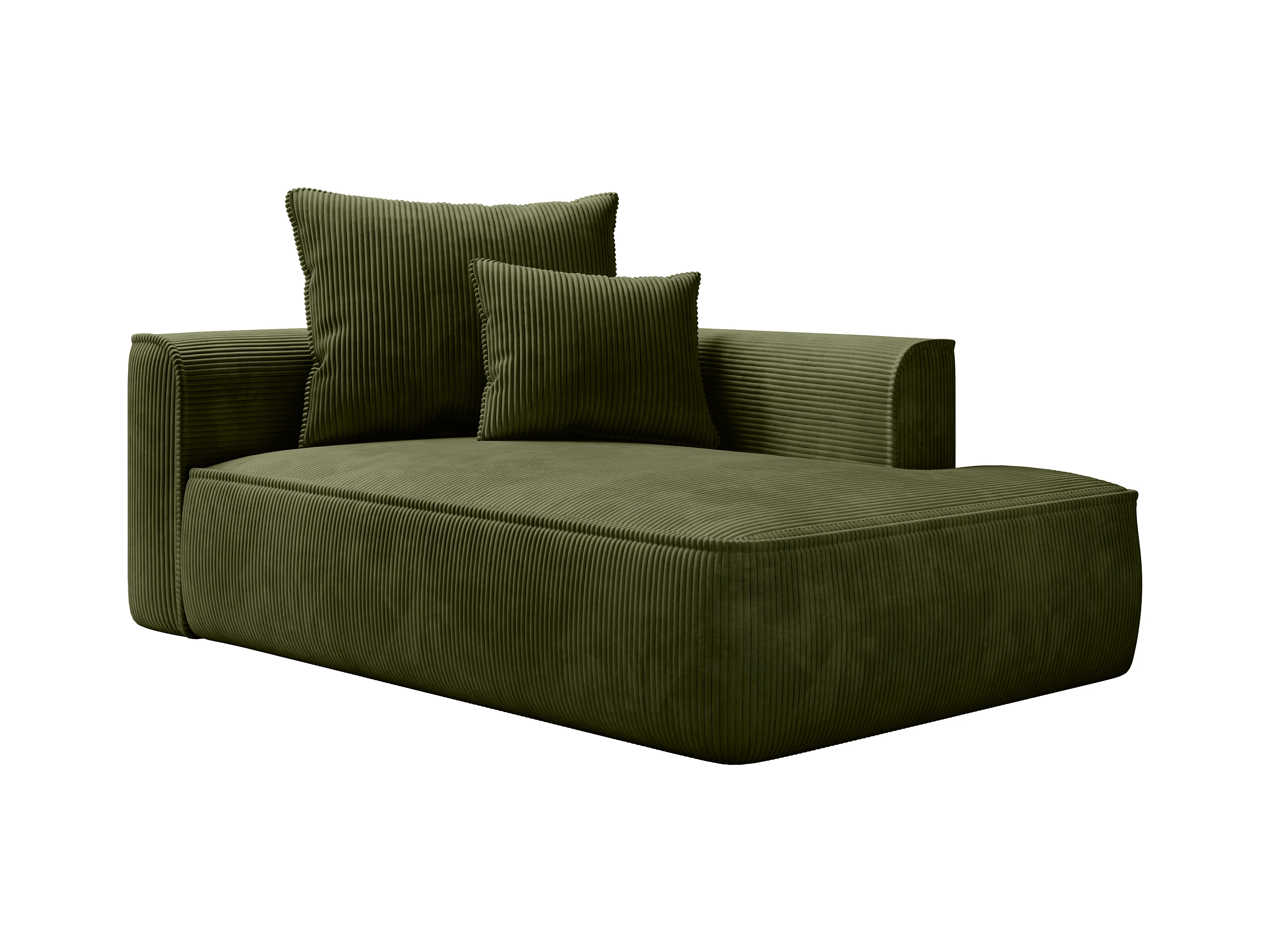 Méridienne gauche en velours côtelé vert kaki PINETA