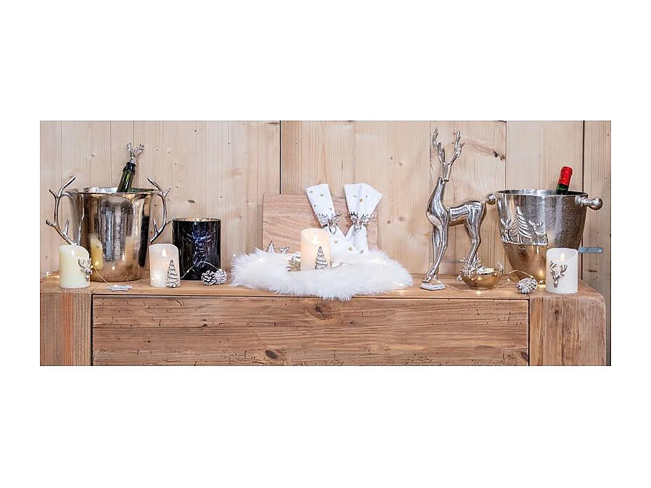 Statuette Déco "Cerf" 24cm Argent & Blanc