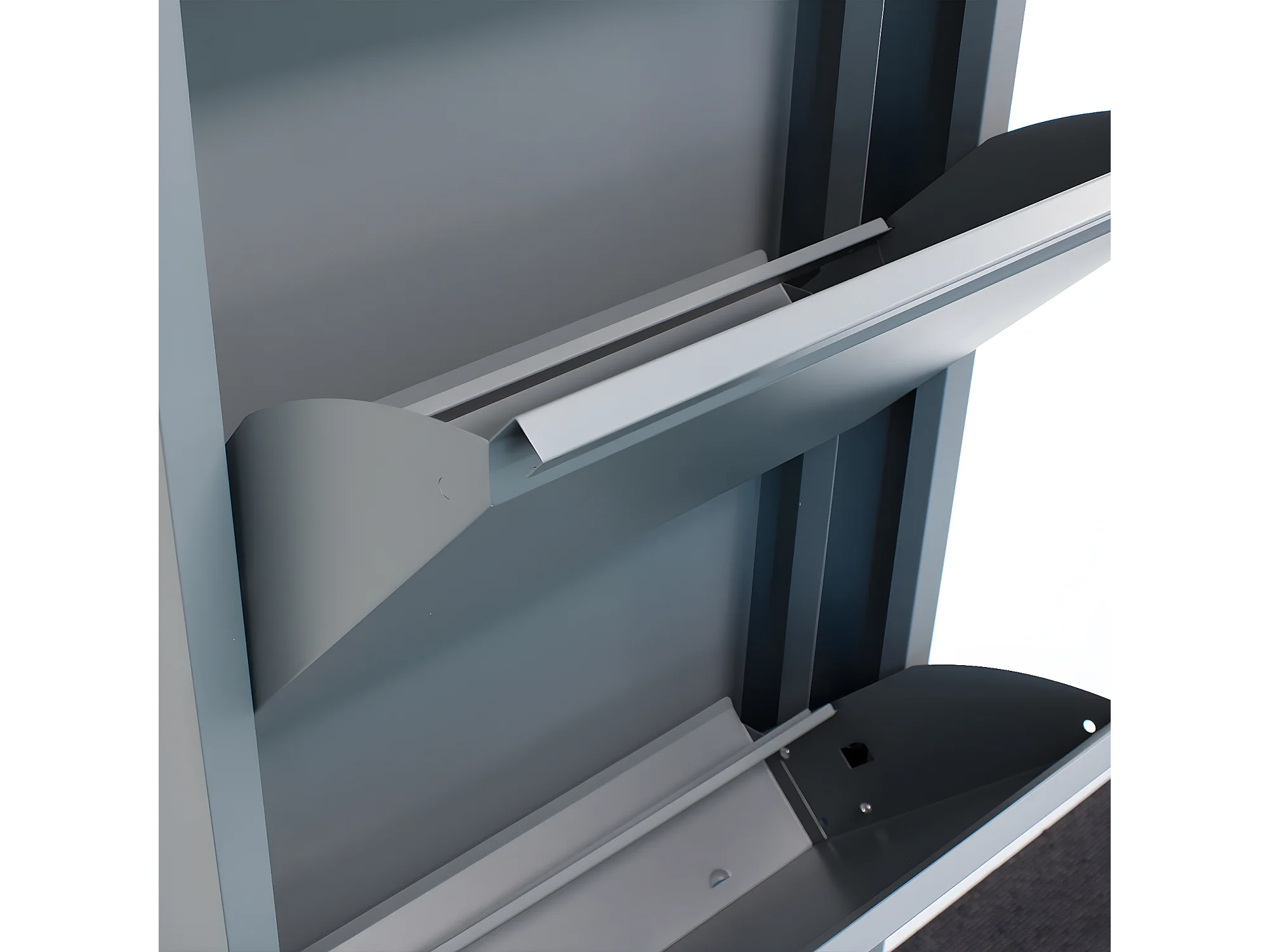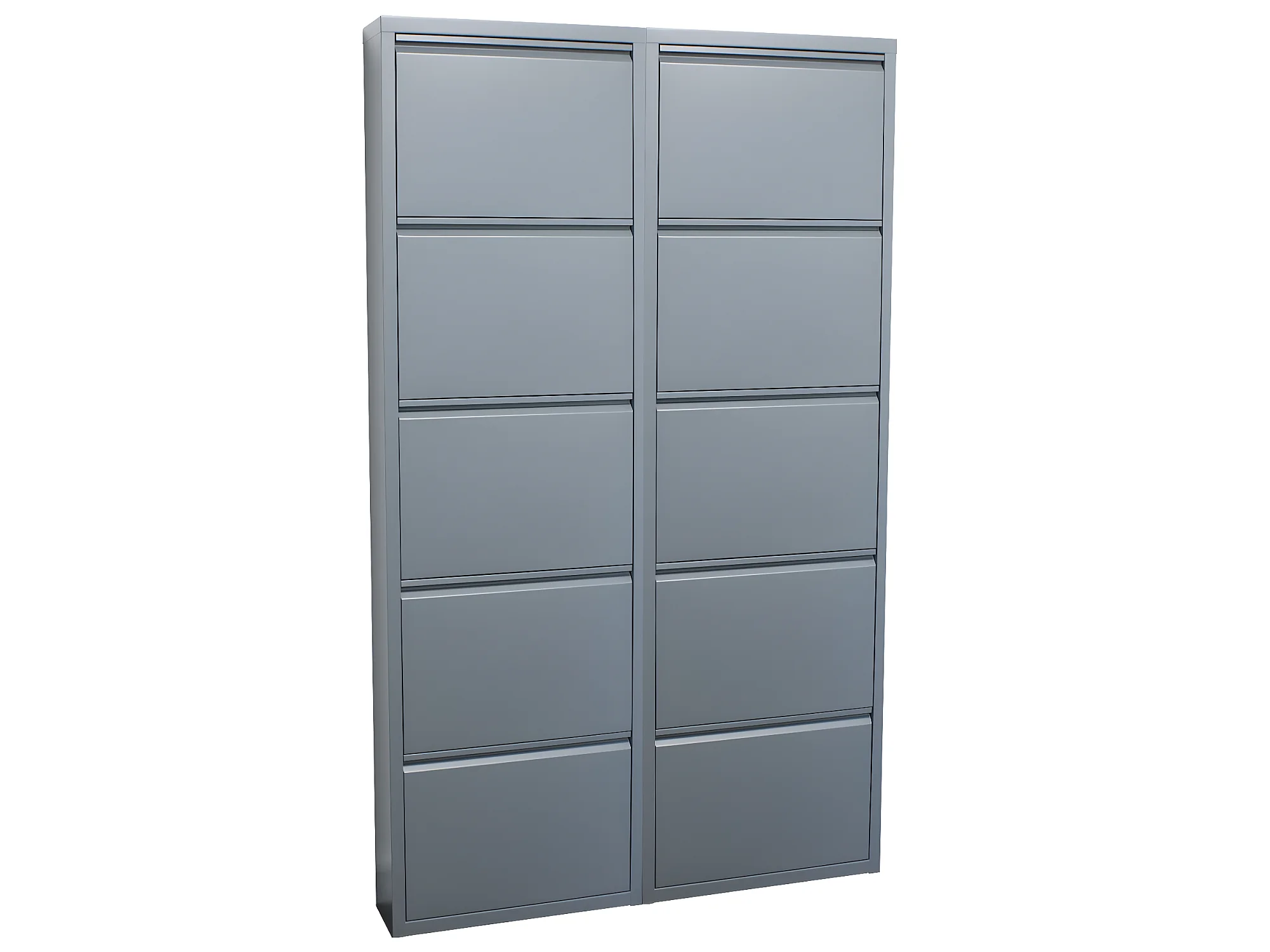 Pisa Armoire à chaussures à 10 rabats/portes en métal, gris. Livré entièrement monté.