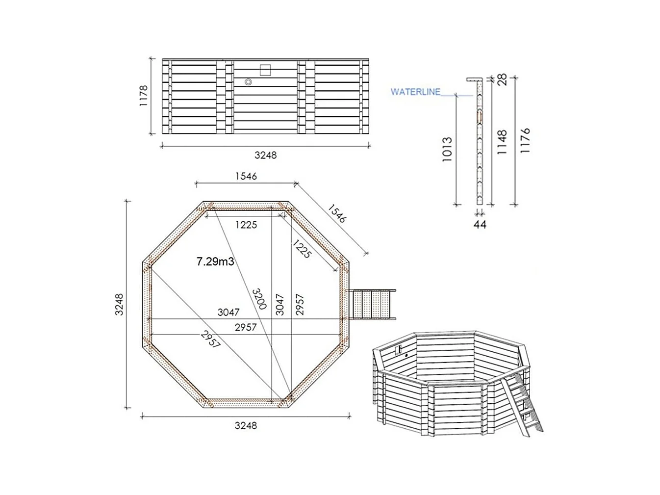 Piscine en bois Coral 3.25x3.25 - H.1.18 m autoportante - BAS7301OSP - ALTANKA