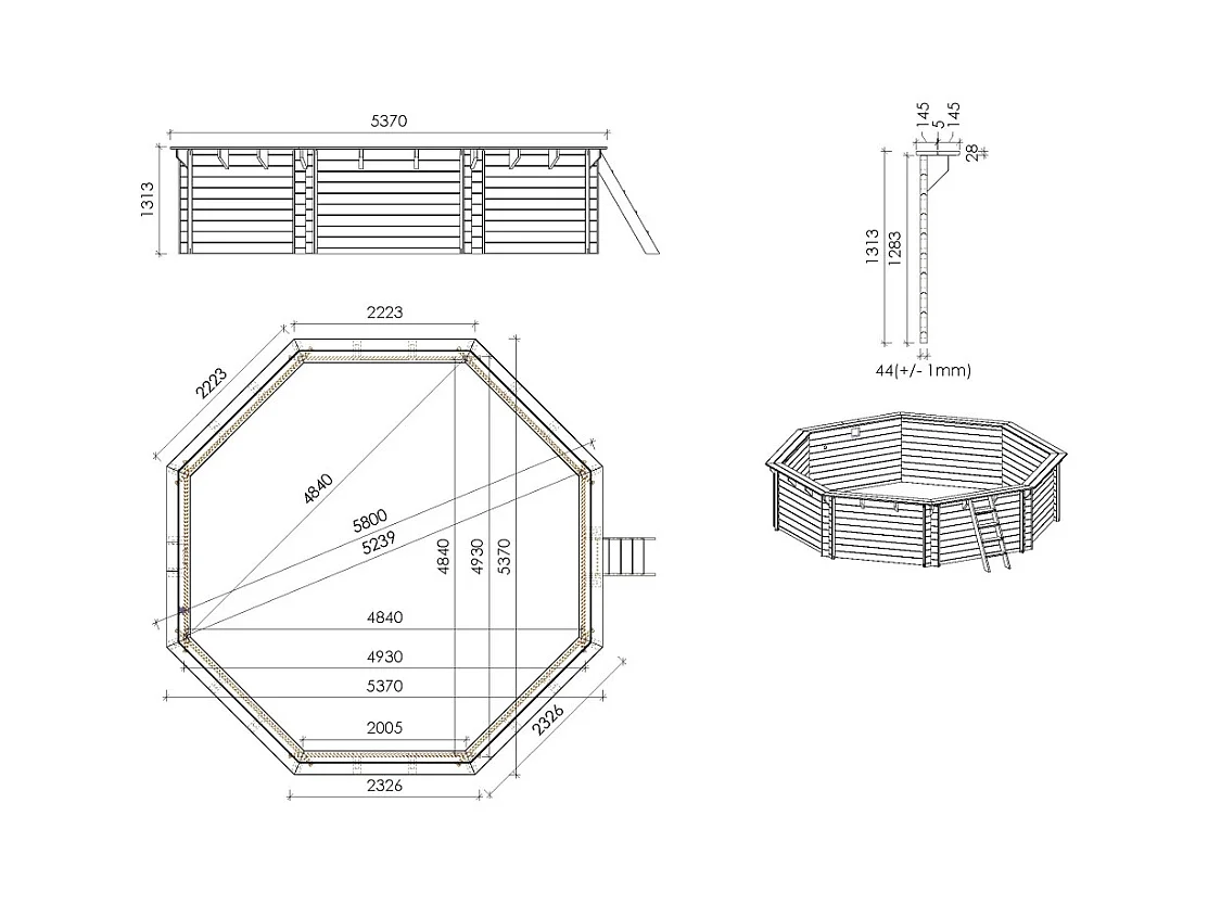 Piscine en bois 5.37x5.37 - H.1.31 m autoportante - BAS90OSP+SZA8 - ALTANKA
