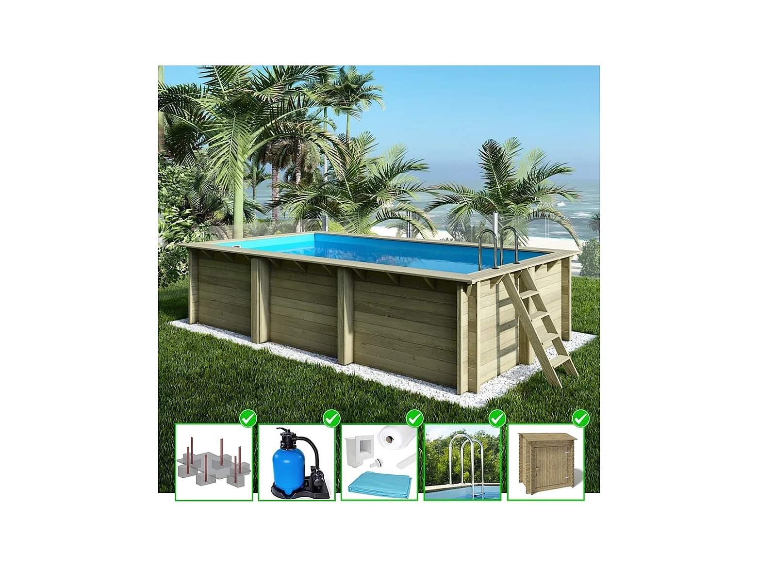 Piscine en bois Aqua 6.1x2.85 - H.1.31 m fixations à visser - BAS7307OSPL+SZA - ALTANKA