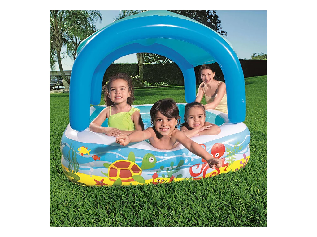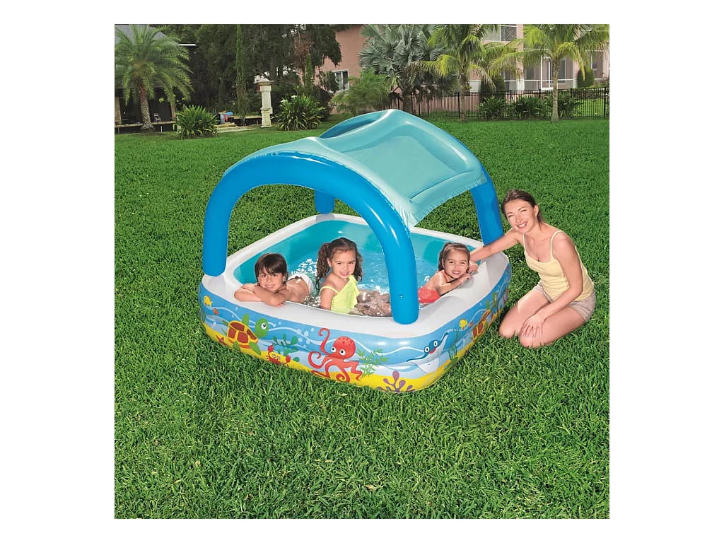 Piscine de jeu avec auvent bleu 140x140x114 cm 52192 FR178016