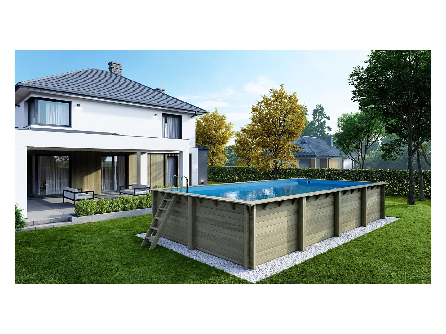 Piscine en bois Aqua 7x3.75 - H.1.45 m fixations à visser - BAS7308OSPL+SZA - ALTANKA