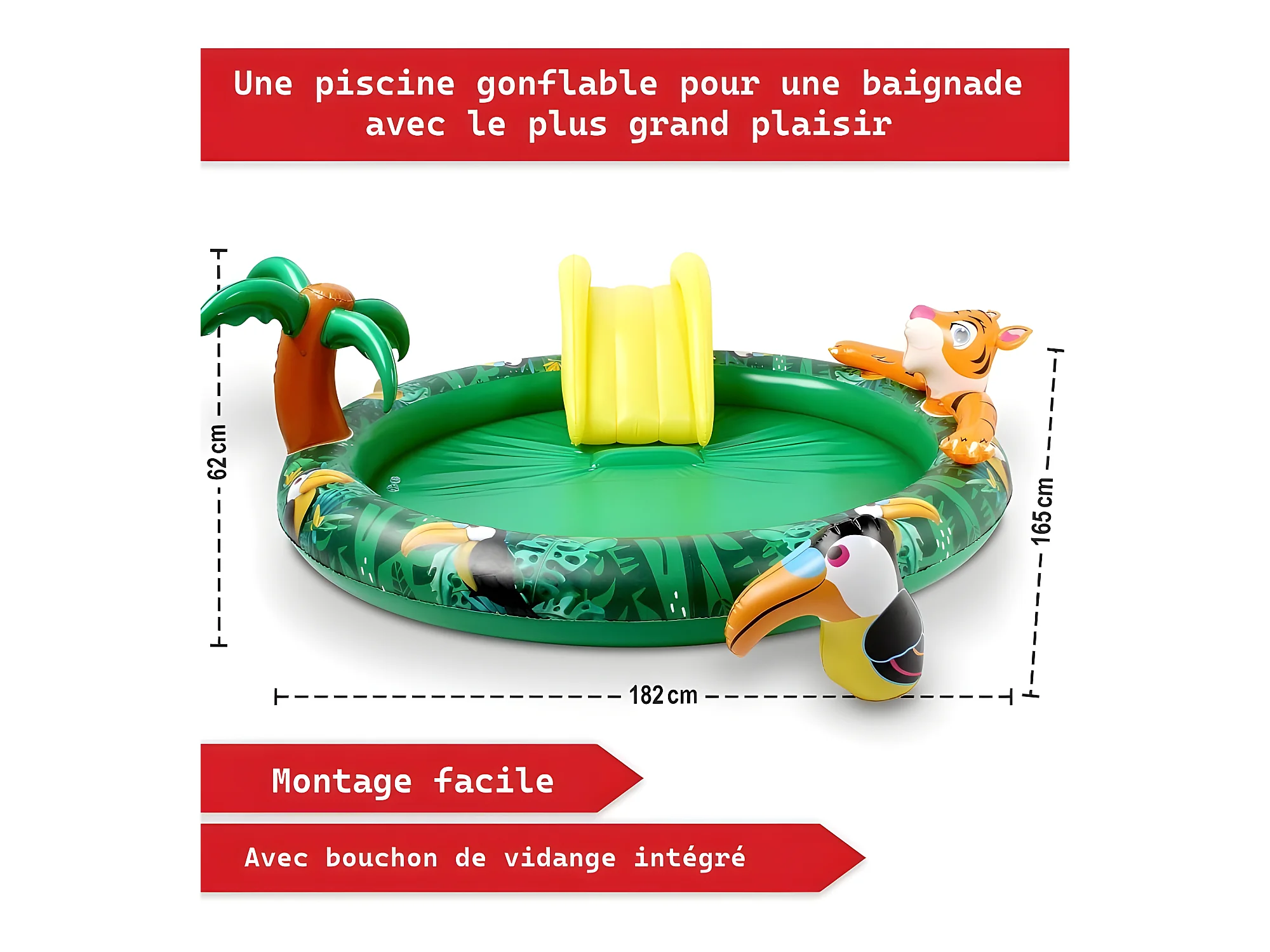 Piscine gonflable pour enfants toboggan de piscine - 182x165x62 cm piscine hors sol design Jungle- Parc aquatique