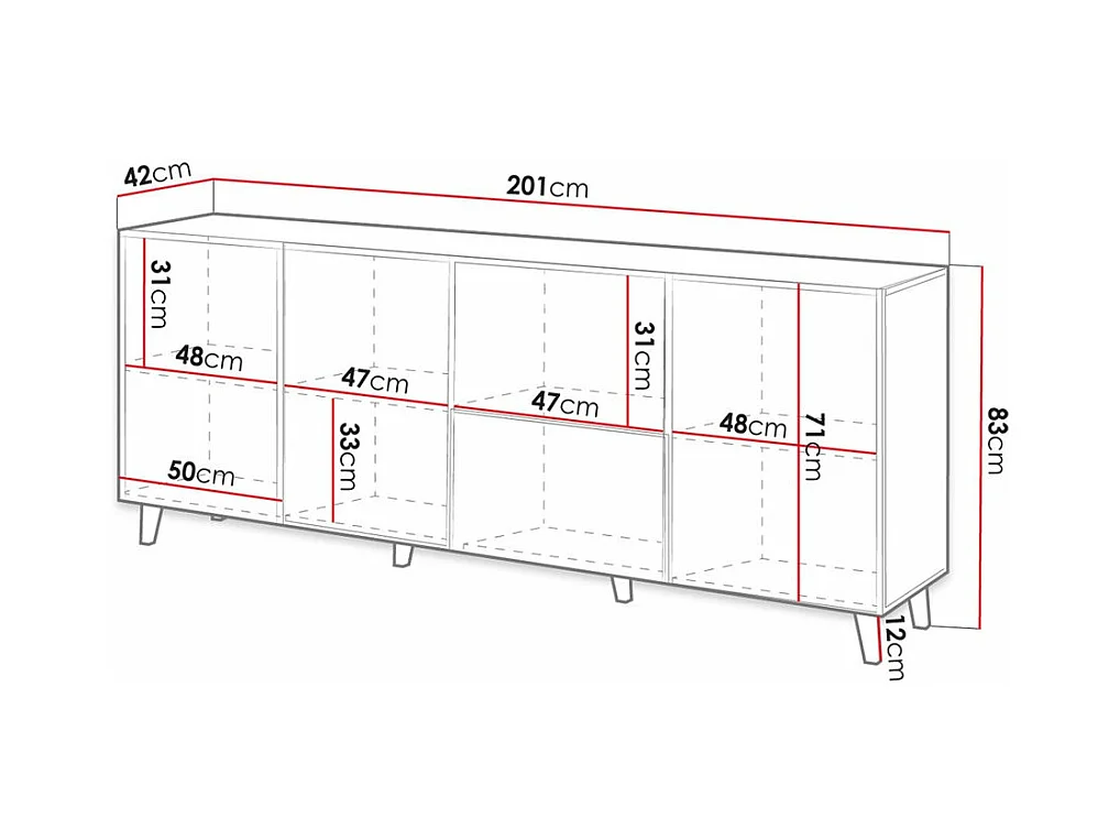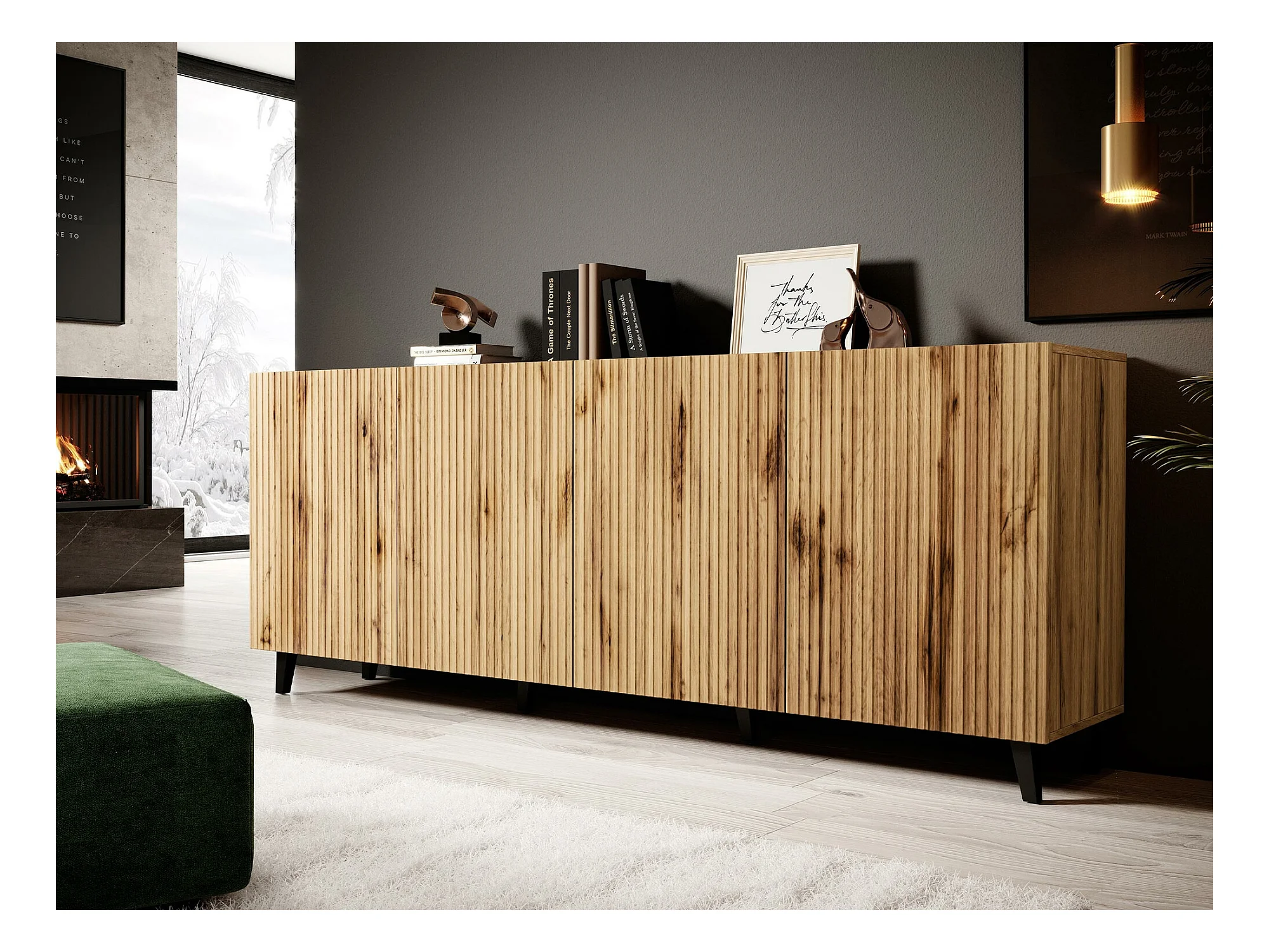 Buffet Remeta 100, Noir|Chêne wotan, 83x201cm, Le nombre de portes: 442cm, MDF|Stratifié