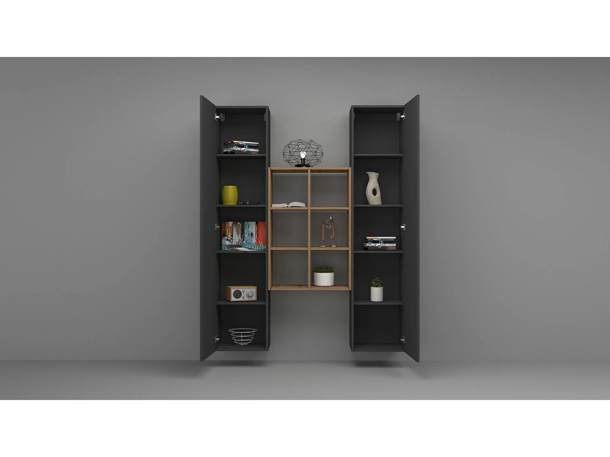 Buffet Ddeluc, Ensemble de salon avec 2 portes et étagères, Buffet de salon, Buffet de cuisine, 100% Made in Italy, 140x30h180 cm, Anthracite et Érable