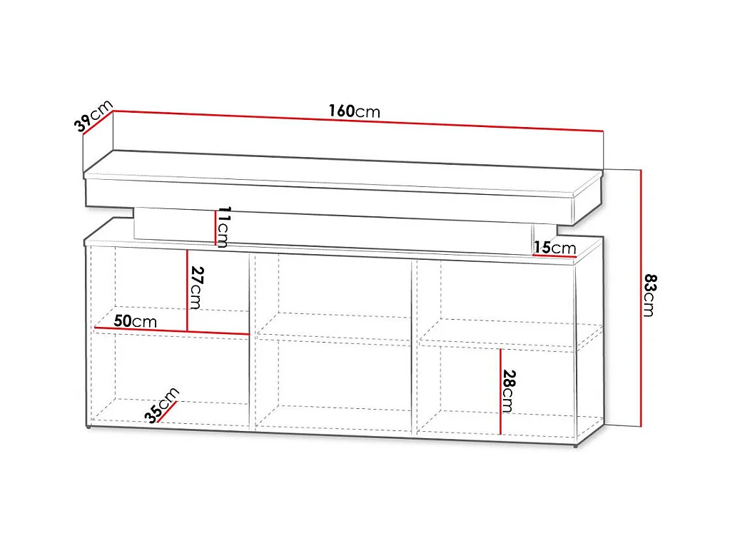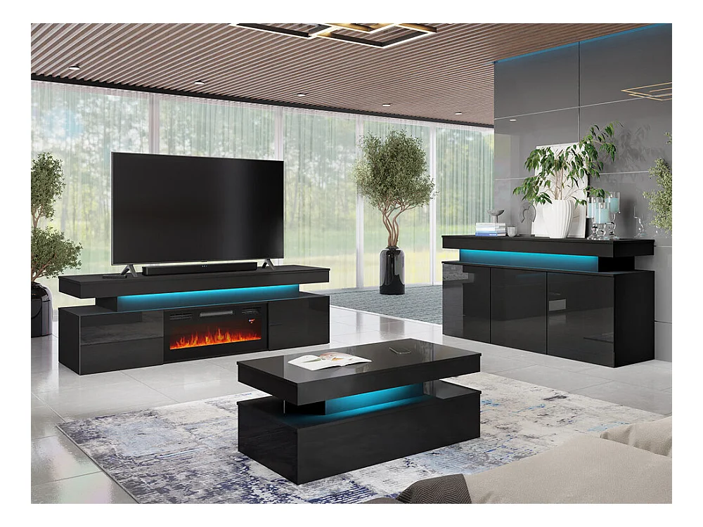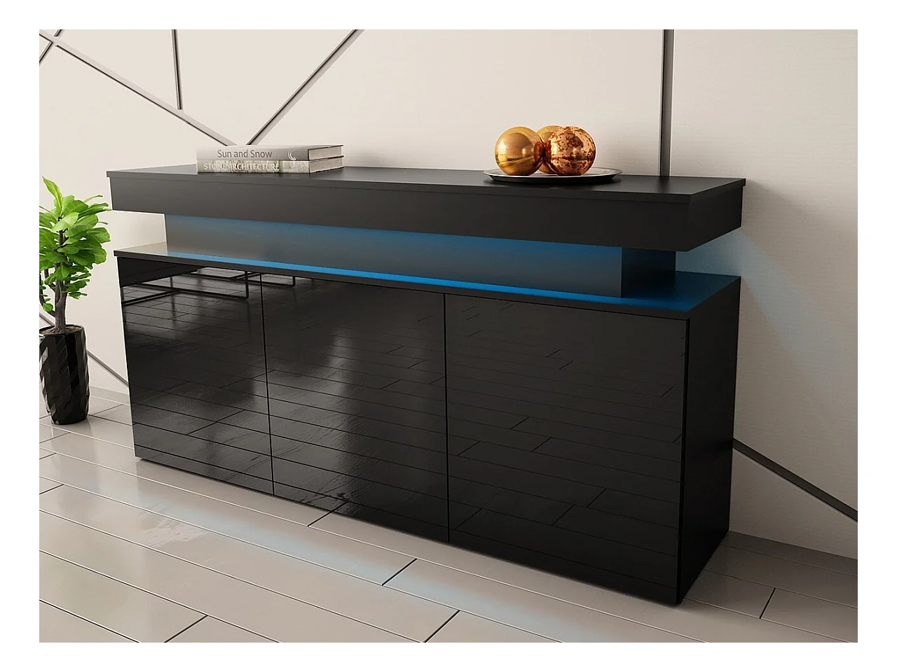 Buffet Monfero 101, Noir|Noir brillant, 83x160x39cm, MDF|Stratifié