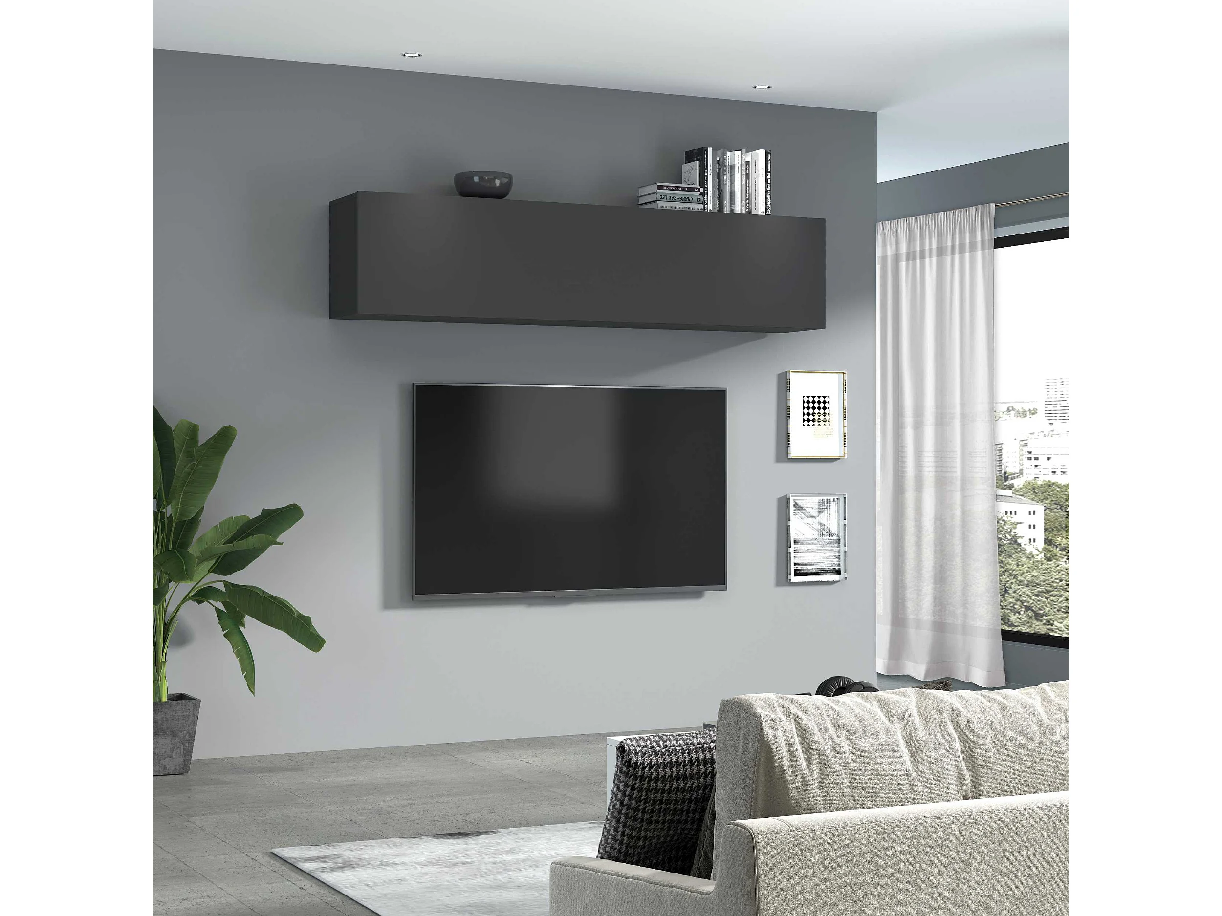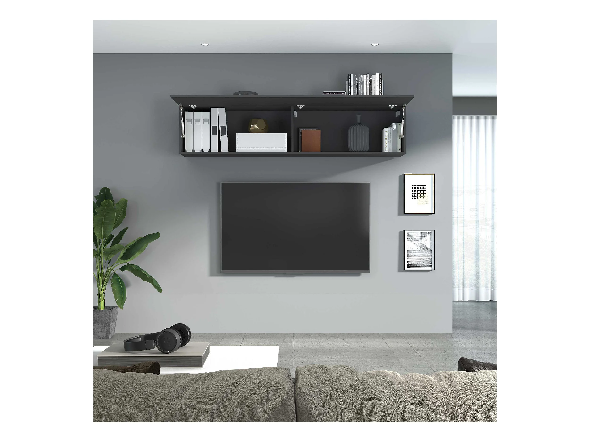 Placard suspendu de salon 2 compartiments porte à rabat gris Note Up