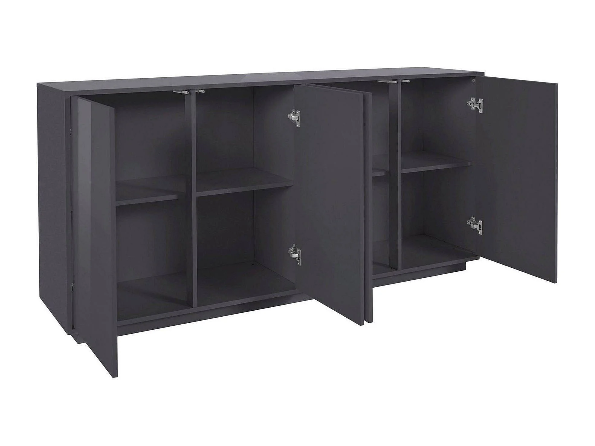 Buffet Virgilio, Buffet de cuisine 4 portes, Buffet de salon, 100% Made in Italy, 180x41h86 cm, Anthracite Brillant