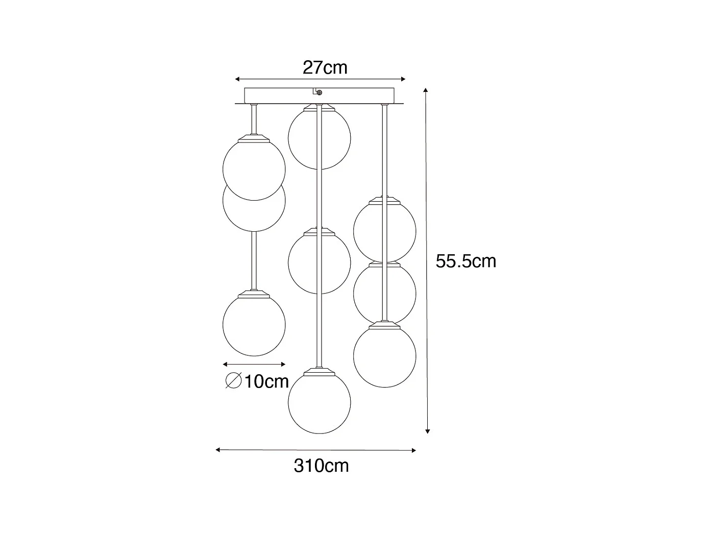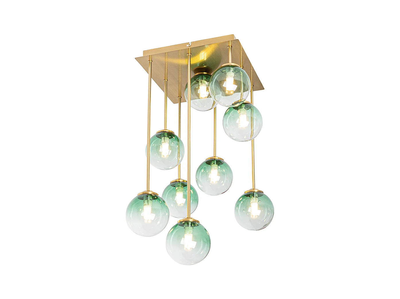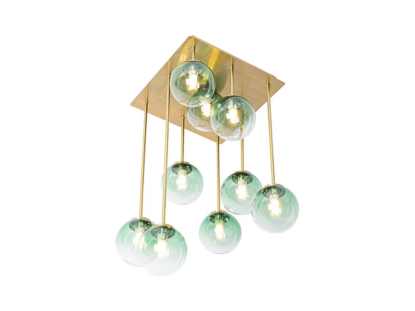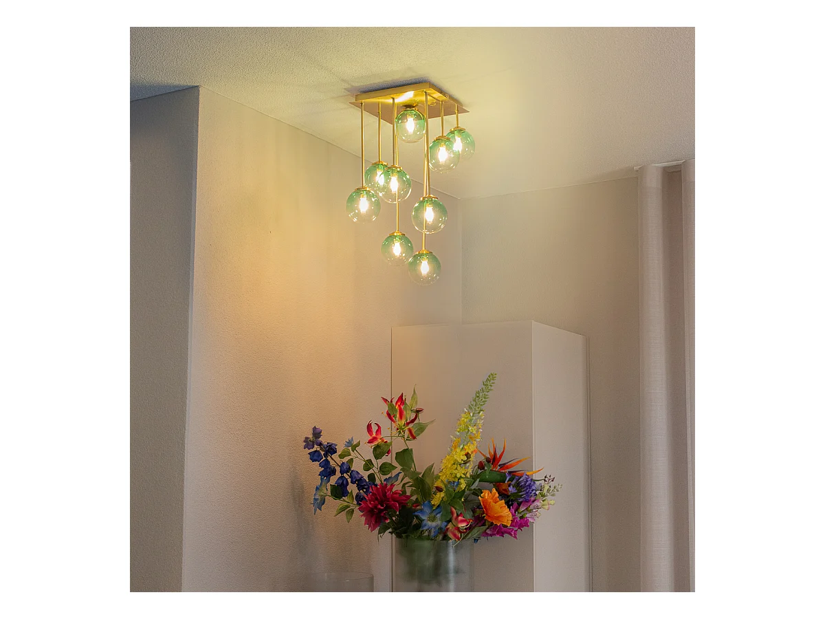 Plafonnier Art Déco or avec verre vert 9 lumières - Athènes