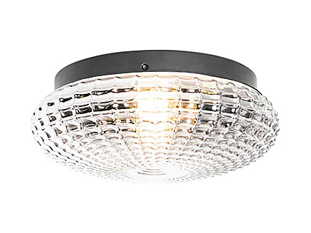 Plafonnier classique noir avec verre fumé 30 cm IP44 - Nohmi