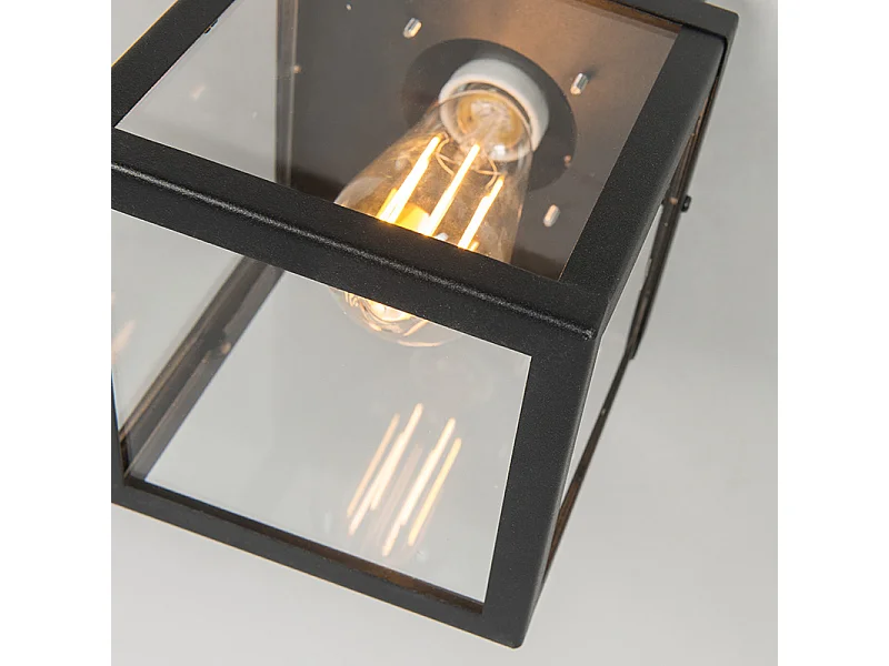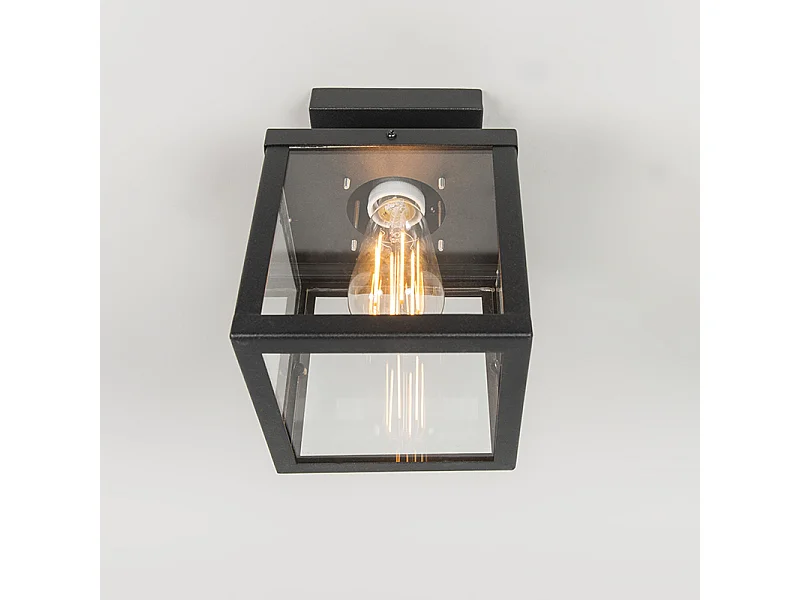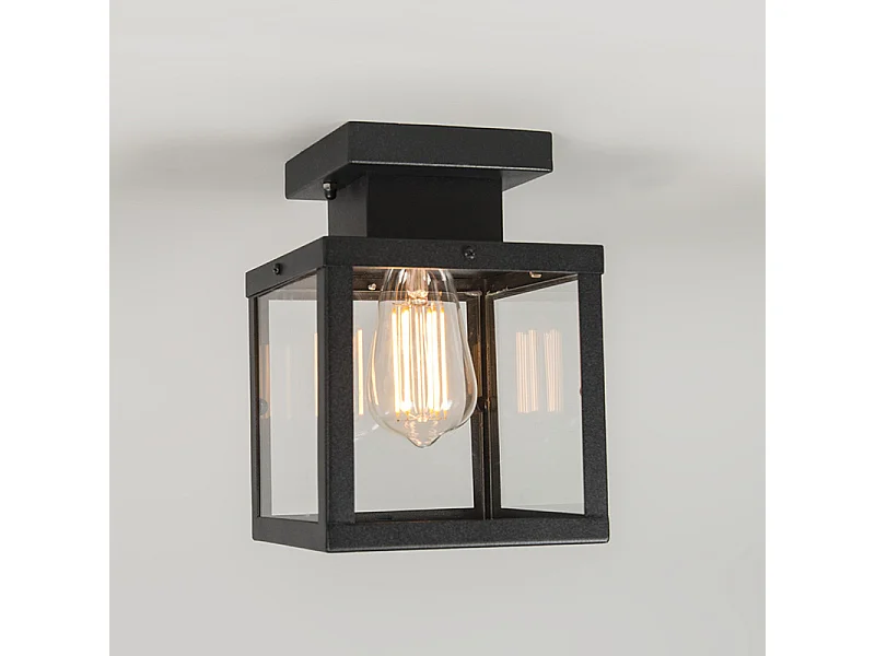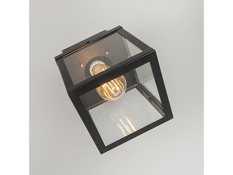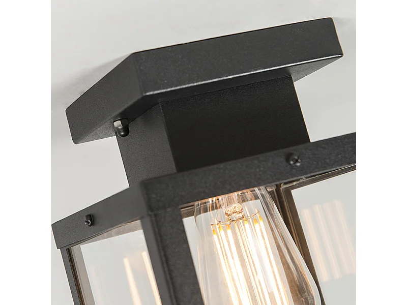 Plafonnier d'extérieur Country noir avec verre IP44 - Elza