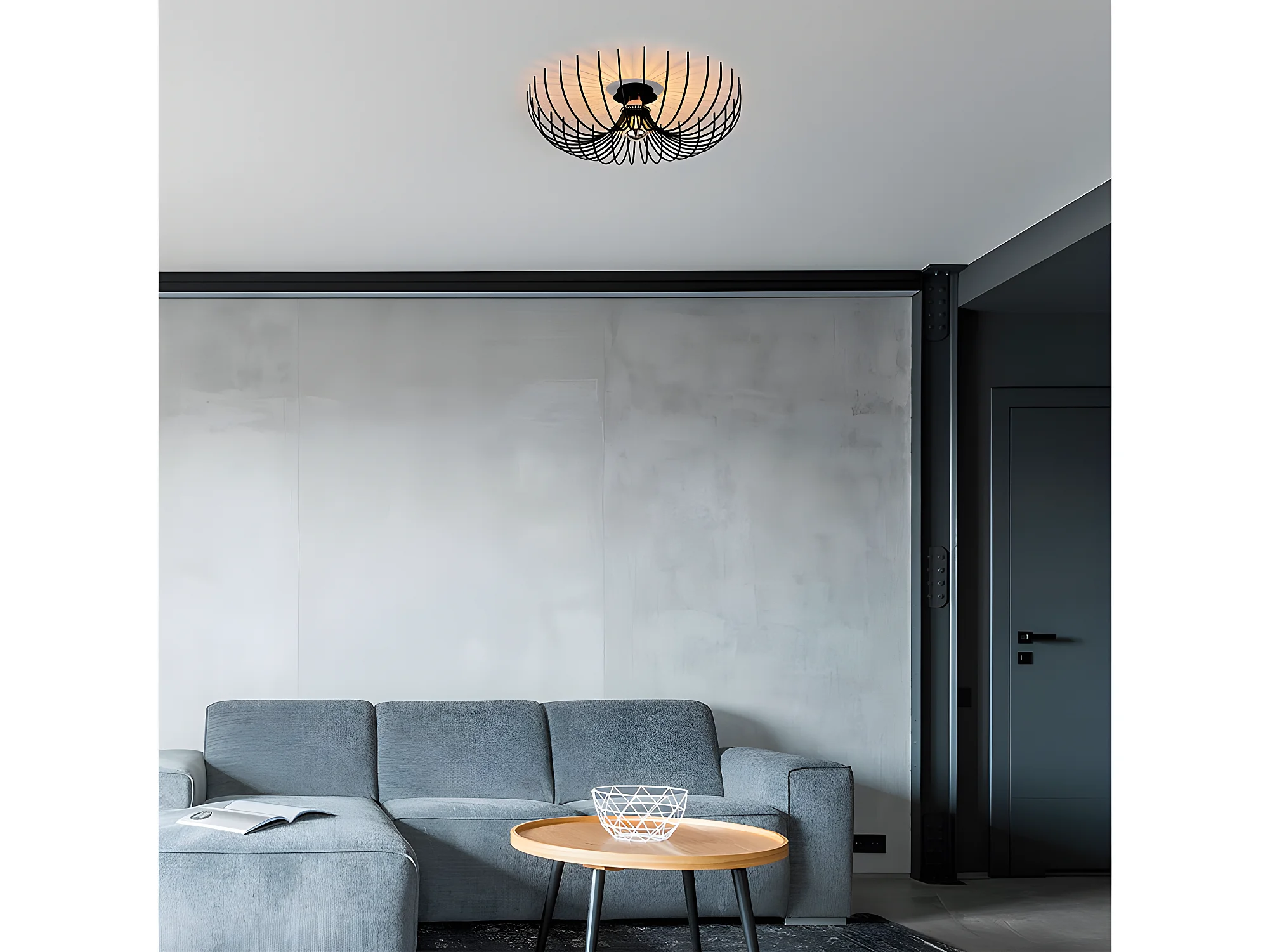 Plafonnier filaire en métal - D. 56 x H. 16 cm - Noir - ASPENDOS