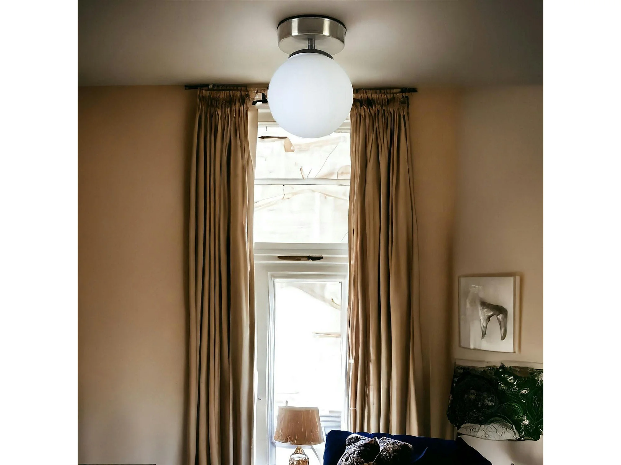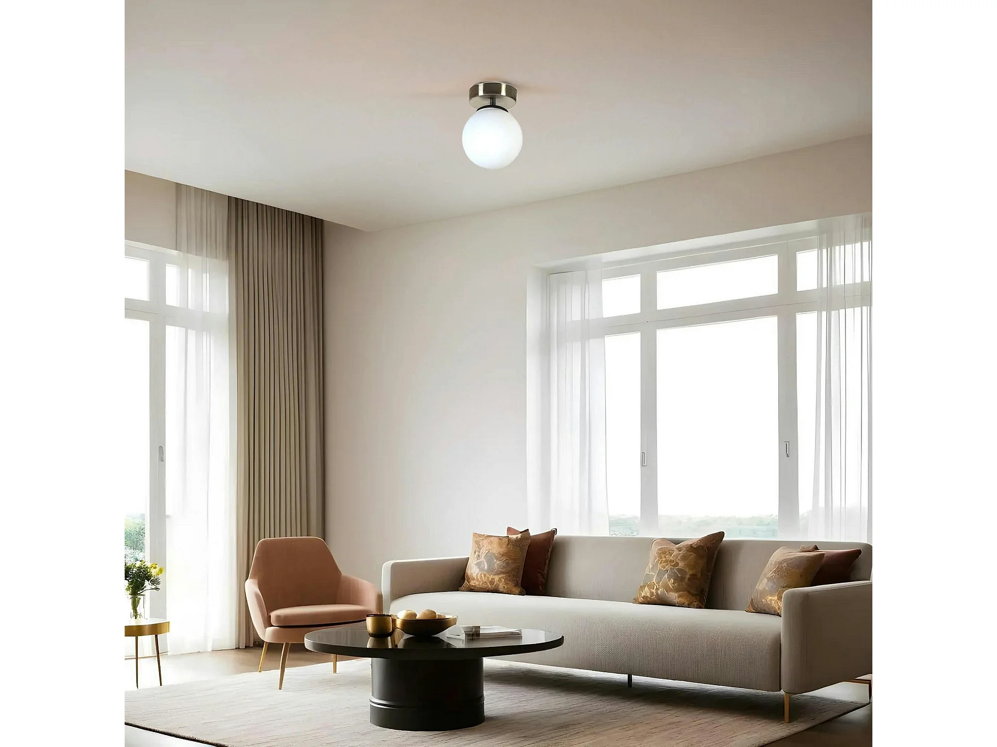 Plafonnier globe verre dépoli, finition argent SIERRE
