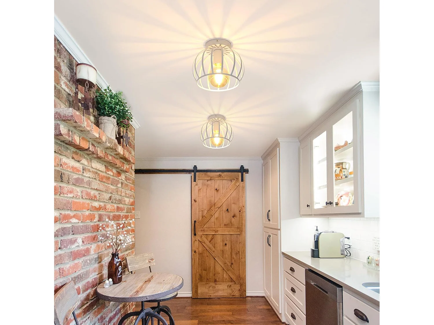Plafonnier Industriel E27 Lustre,Vintage Luminaire Plafonnier Abat-jour en Cage Métal Douille E27,Lampe de Plafond,Blanc,Ampoules non Incluses