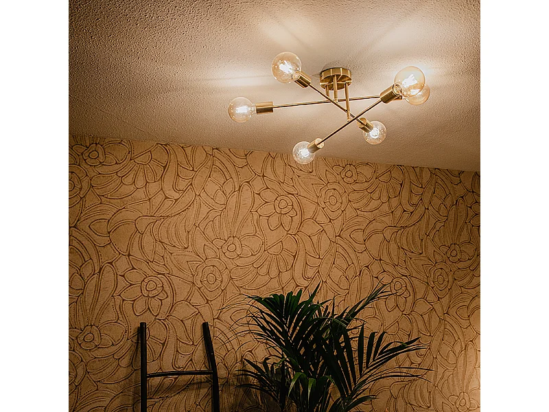 Plafonnier industriel laiton 6 lumières - Sydney