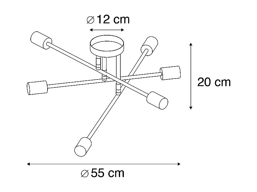 Plafonnier industriel noir avec or 6 lumières - Sydney