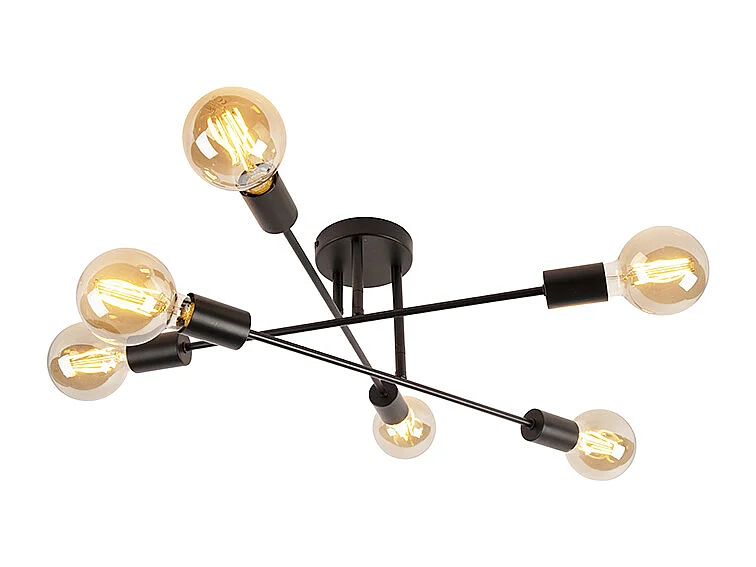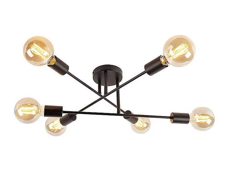 Plafonniers Infinix industriel en acier - 6 sources lumineuses 4000K - L.80 x H.15,5 cm - noir